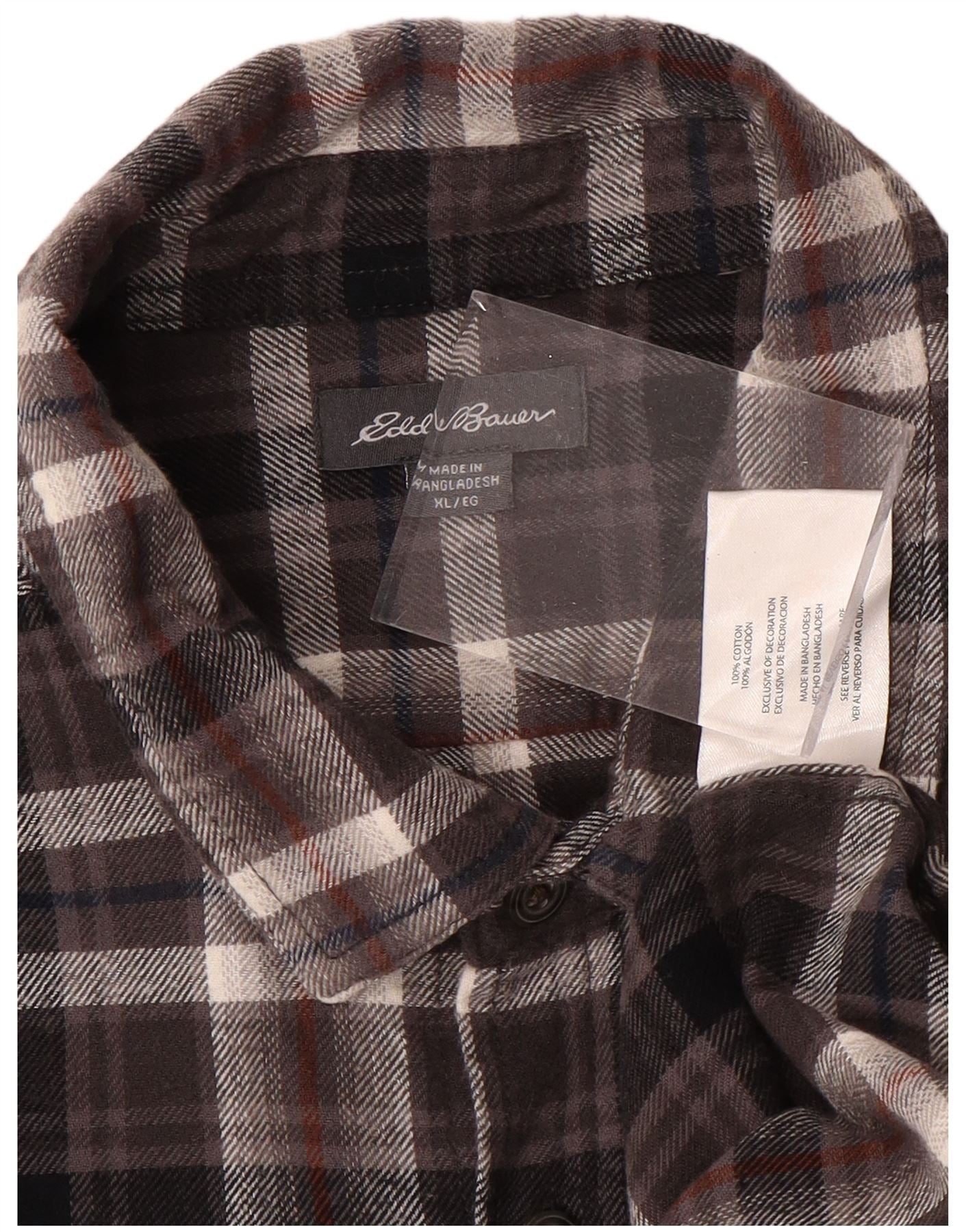 EDDIE BAUER Ανδρικό καρό φανελένιο πουκάμισο XL Καφέ βαμβακερό καρό