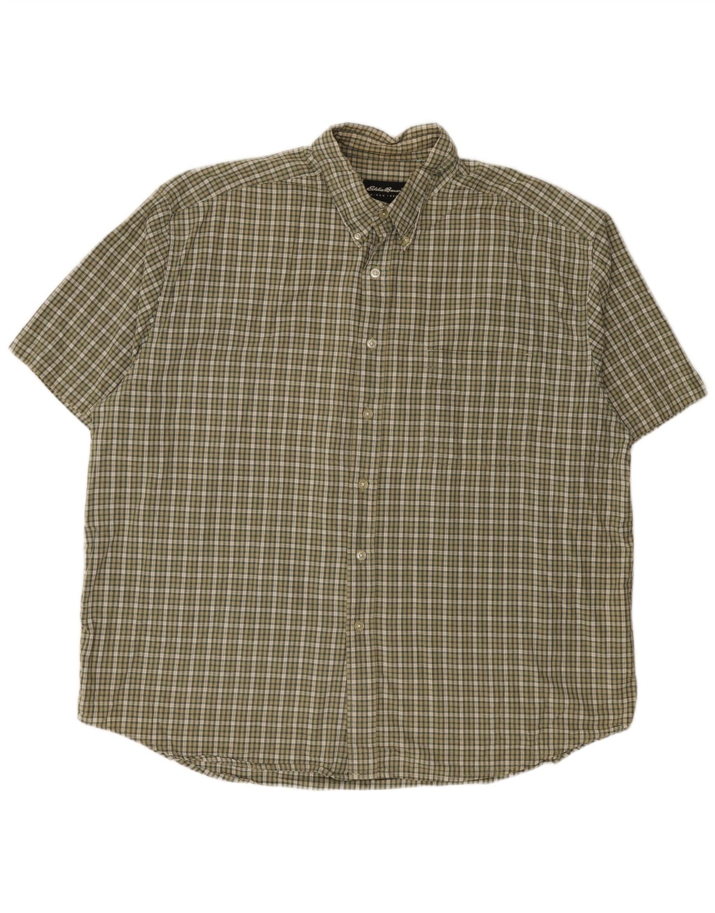 Ανδρικό κοντομάνικο πουκάμισο EDDIE BAUER 2XL Χακί βαμβακερό