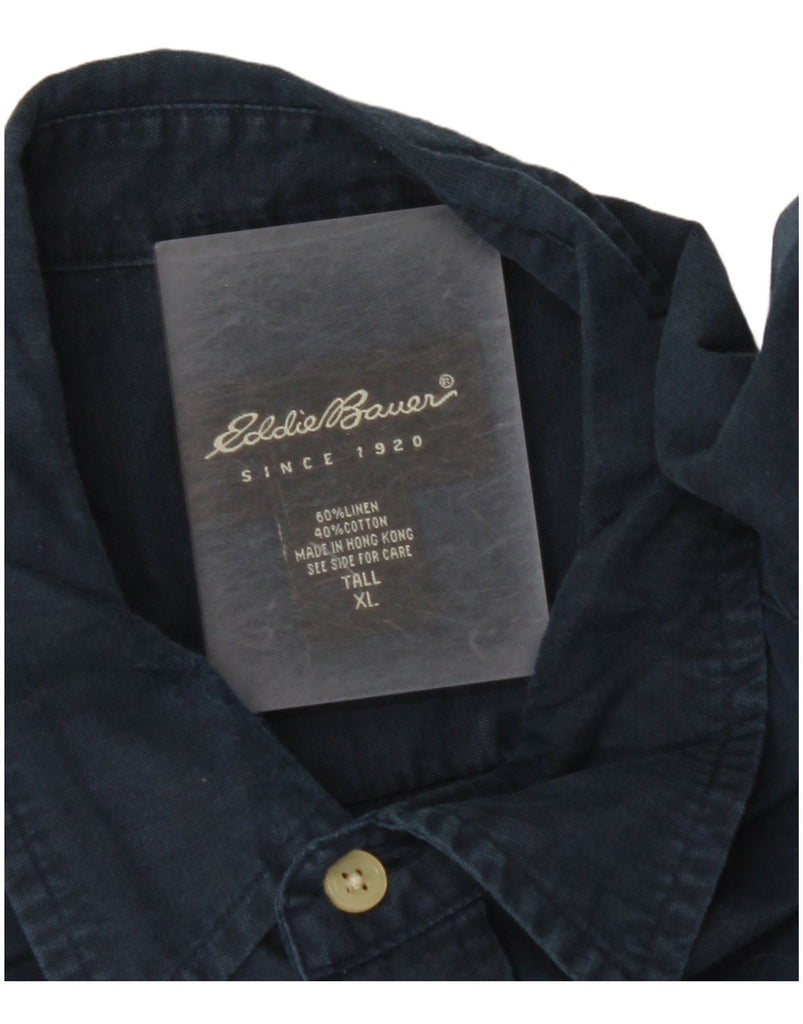EDDIE BAUER Ανδρικό ψηλό κοντομάνικο πουκάμισο XL Navy μπλε λινό