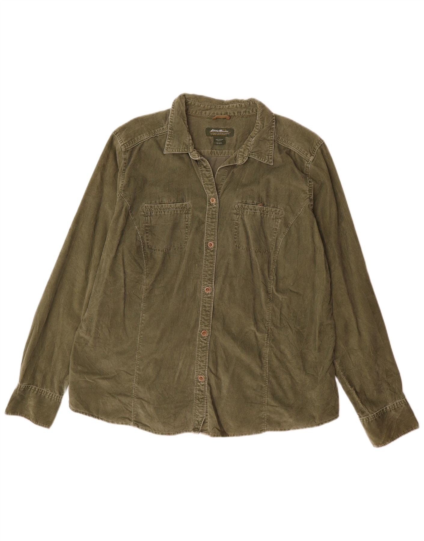 EDDIE BAUER Γυναικείο ψηλό κοτλέ πουκάμισο UK 18 XL πράσινο βαμβακερό