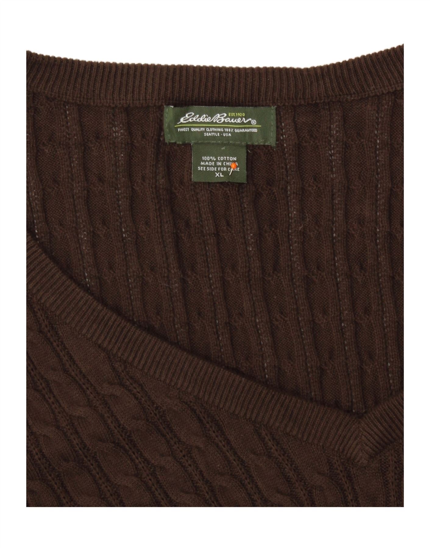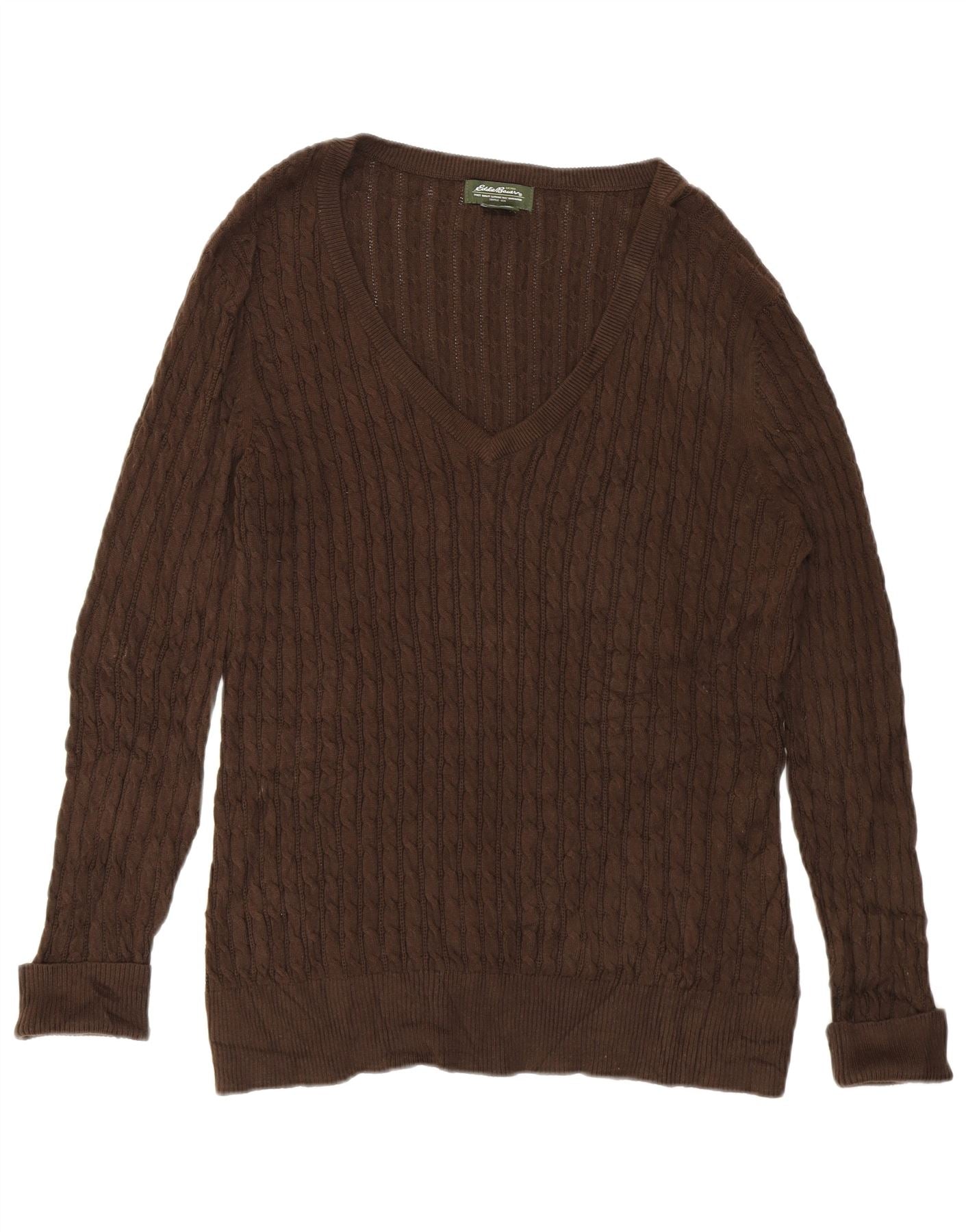EDDIE BAUER Γυναικείο πουλόβερ με V λαιμόκοψη UK 18 XL καφέ βαμβακερό