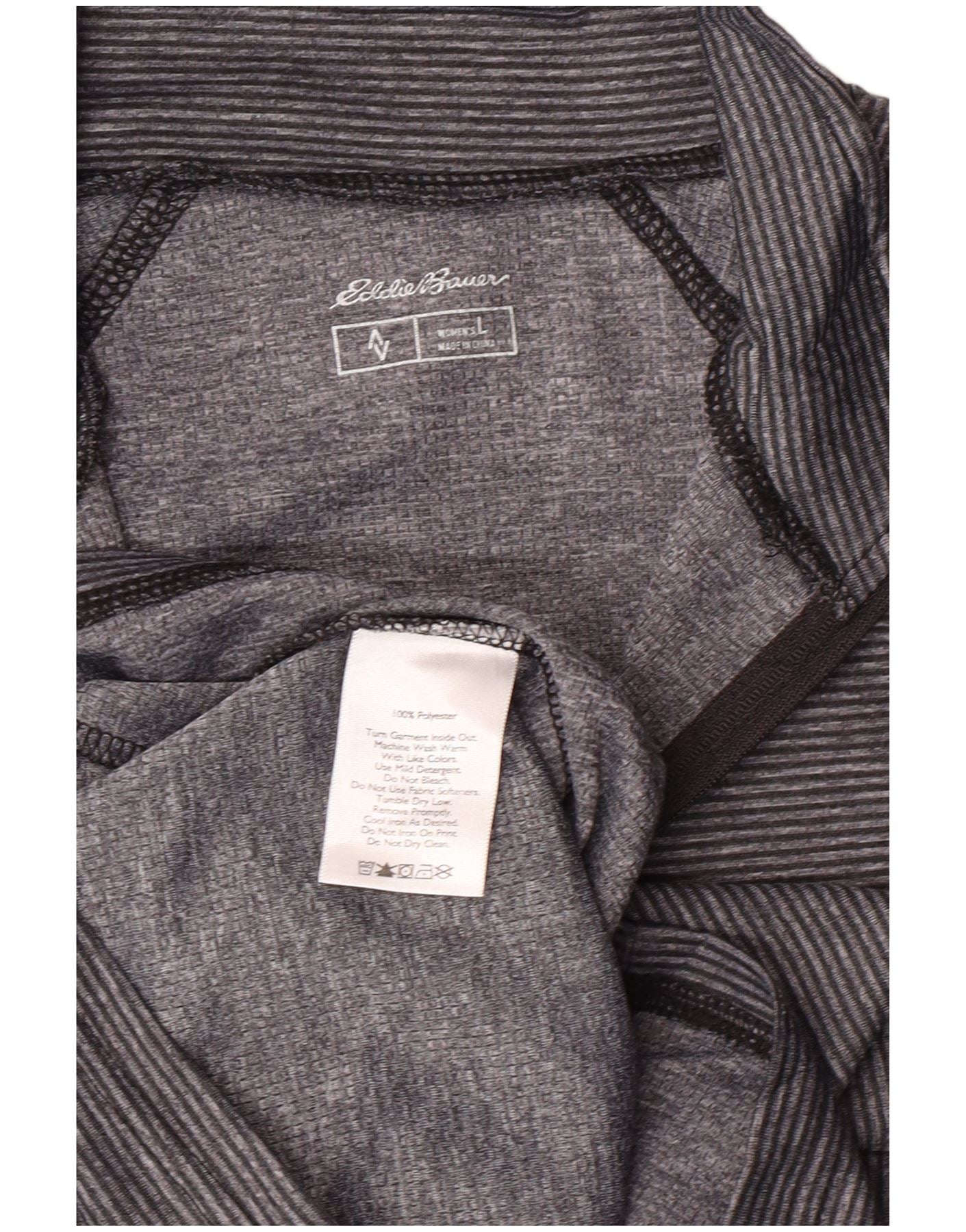 Eddie Bauer Γυναικεία μπλούζα με φερμουάρ μακρυμάνικο UK 14 μεγάλα γκρι ριγέ σπορ
