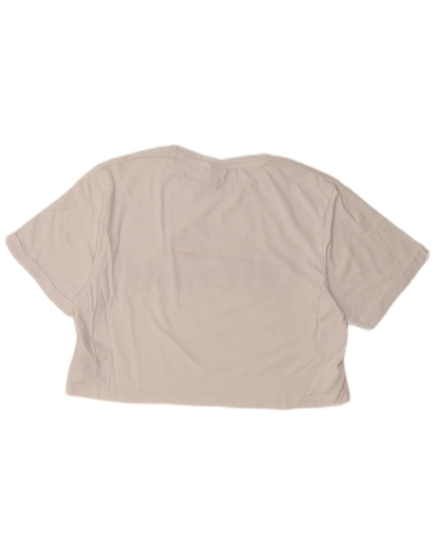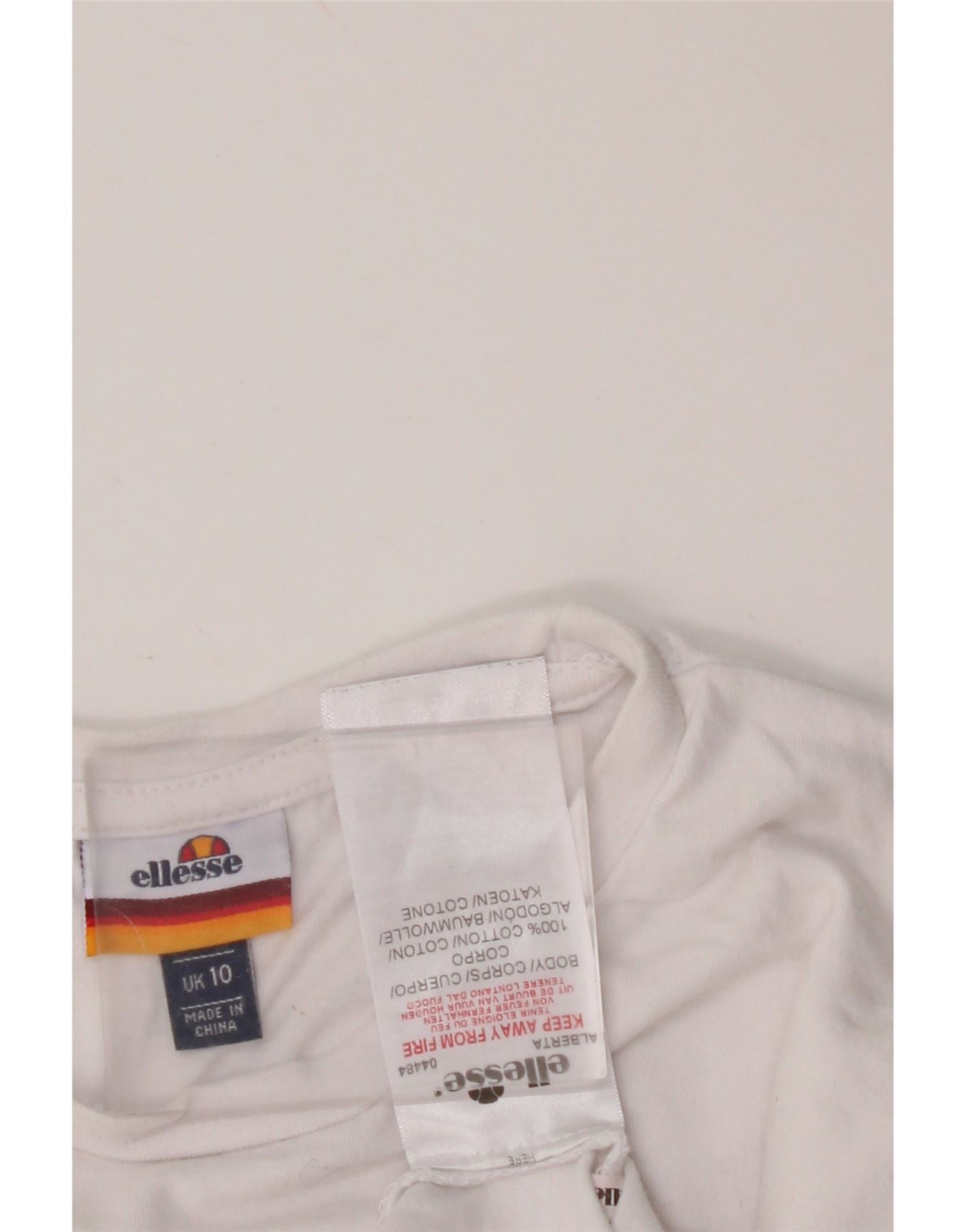 ELLESSE Γυναικείο Crop Graphic T-Shirt Top UK 10 Small White Βαμβακερό
