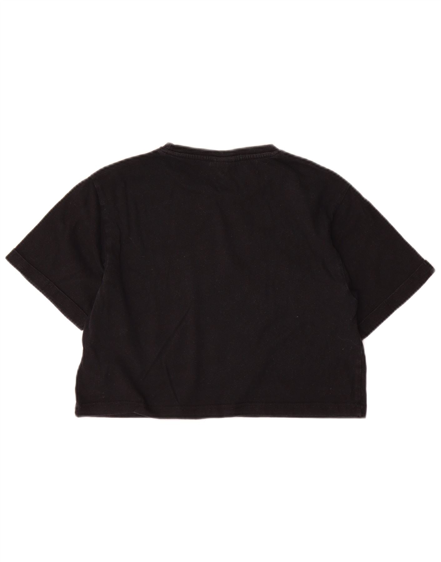 Γυναικείο γραφικό μπλουζάκι μεγάλου μεγέθους Crop ELESSE UK 6 XS μαύρο βαμβακερό
