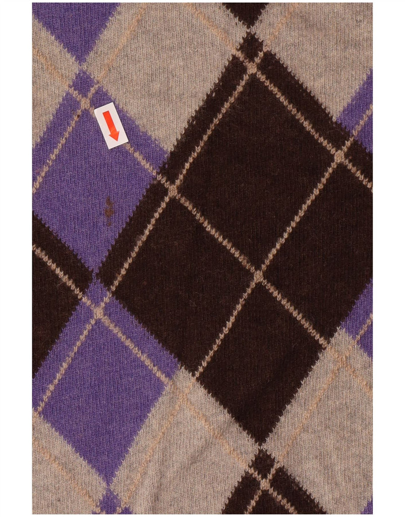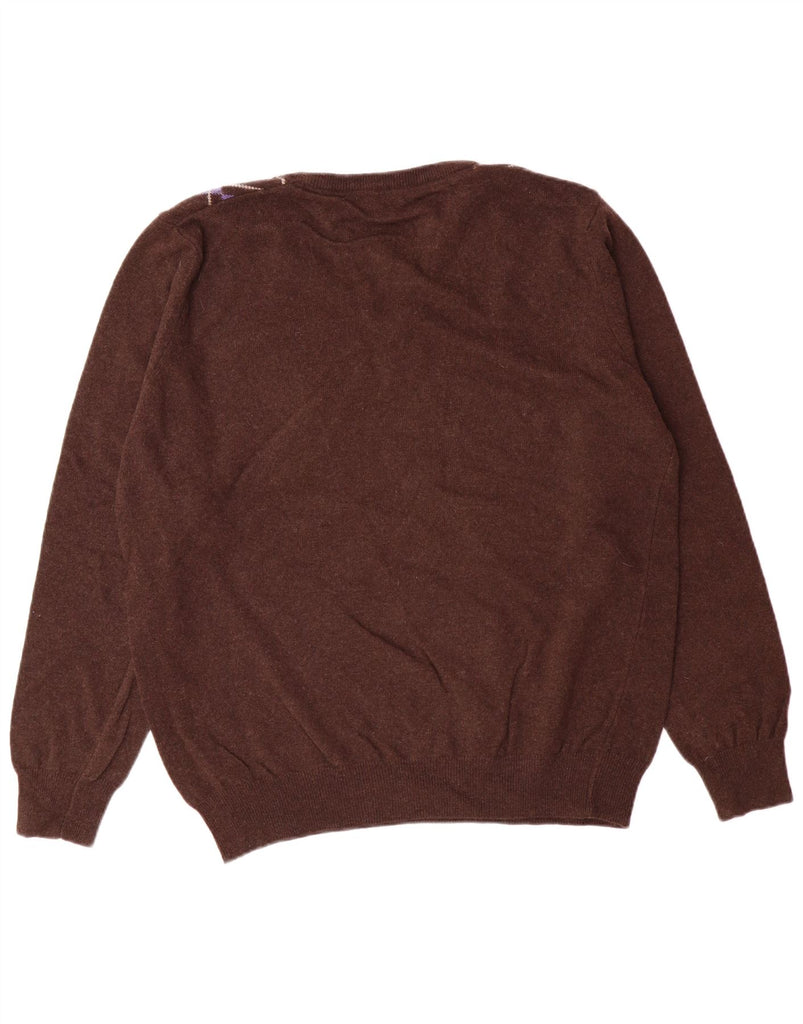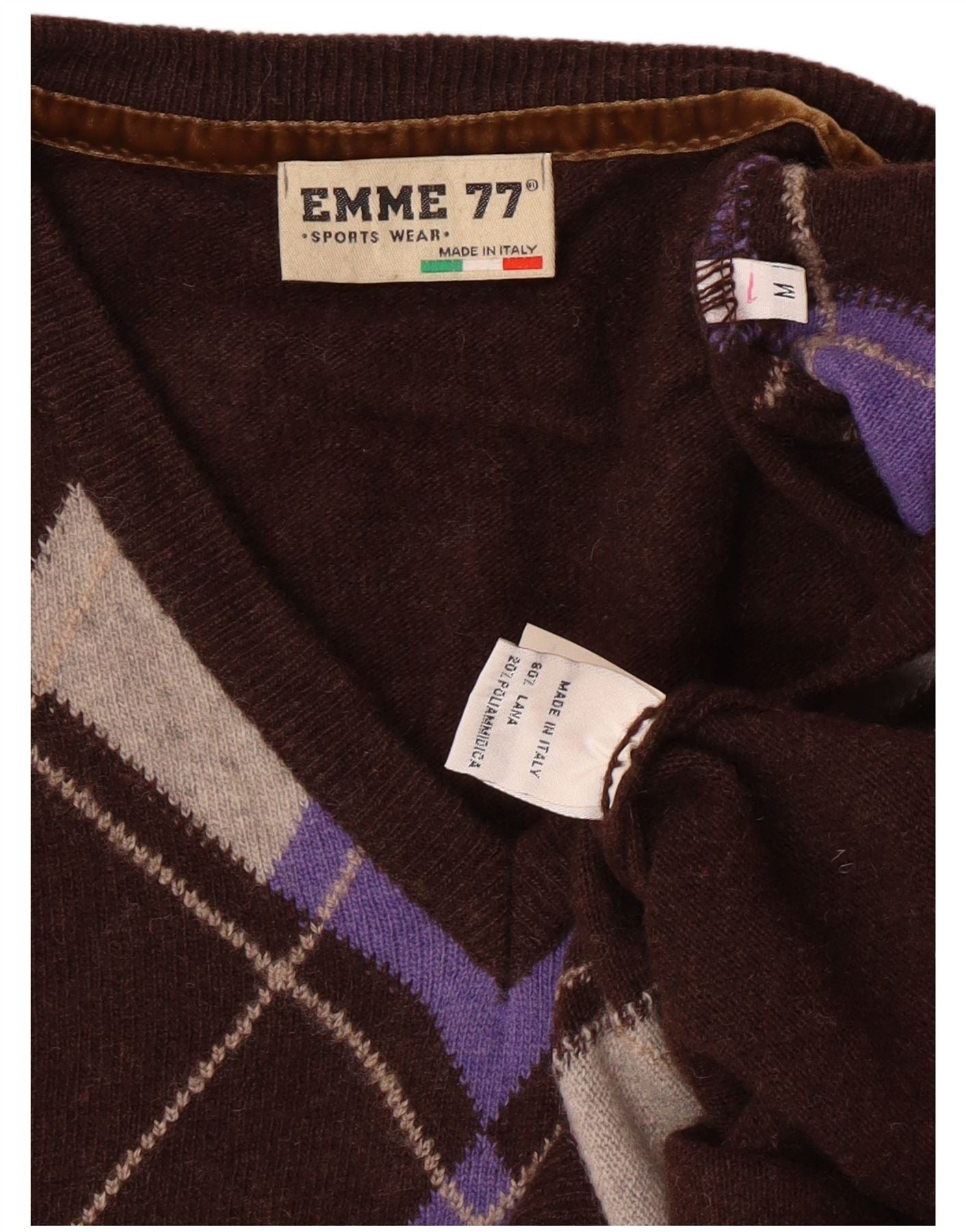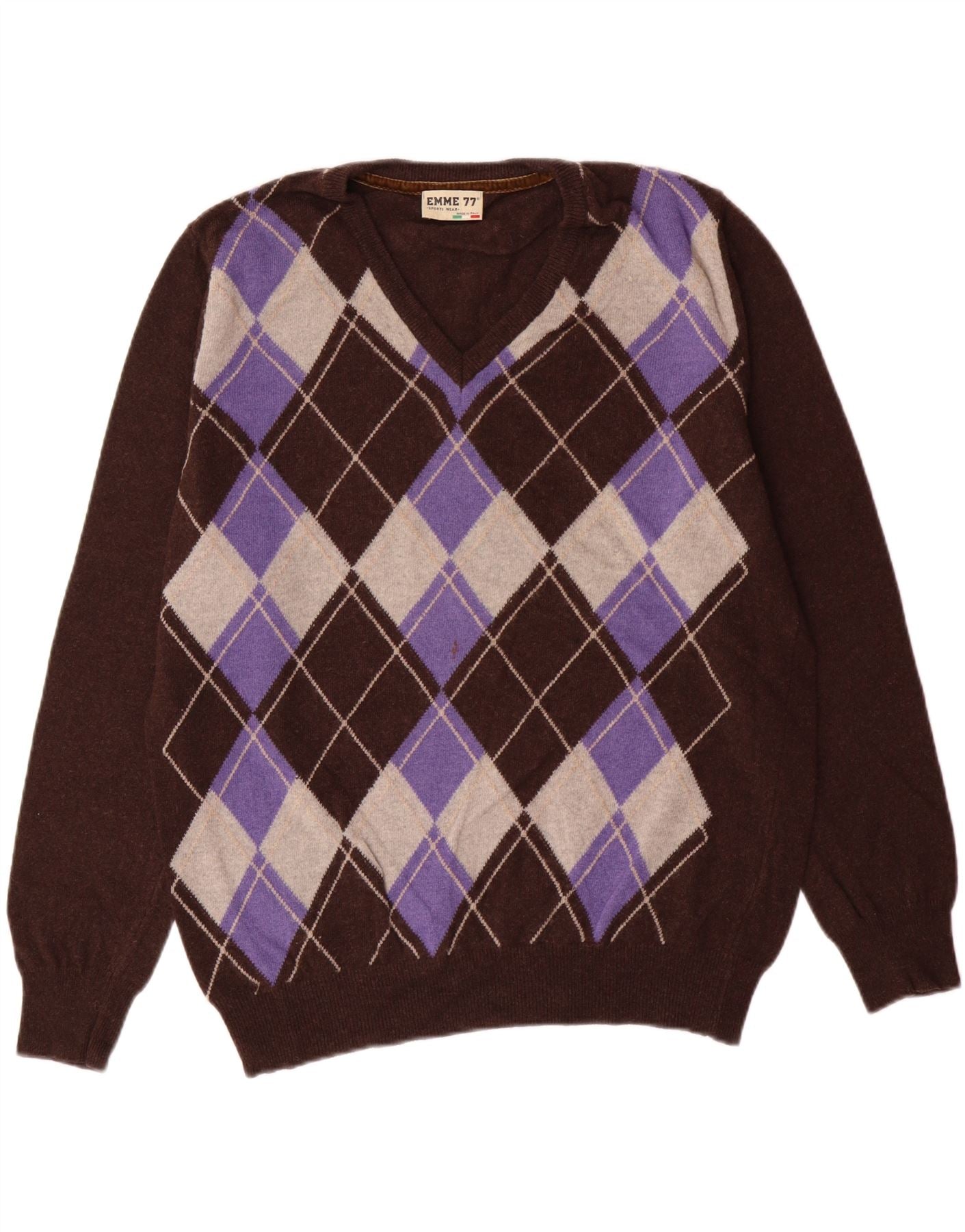EMME 77 Ανδρικό πουλόβερ με λαιμόκοψη με λαιμόκοψη σε μεσαίο καφέ Argyle/Diamond Wool