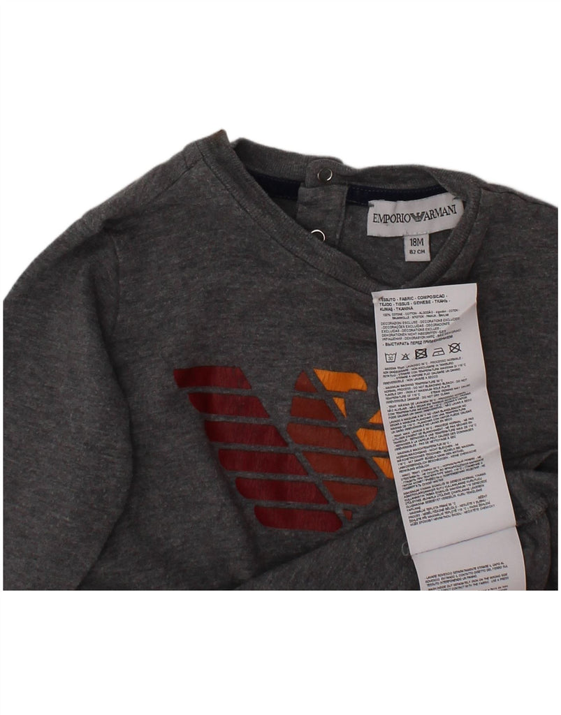 EMPORIO ARMANI Baby Boys Graphic Top Long Sleeve 12-18 Months Grey Cotton