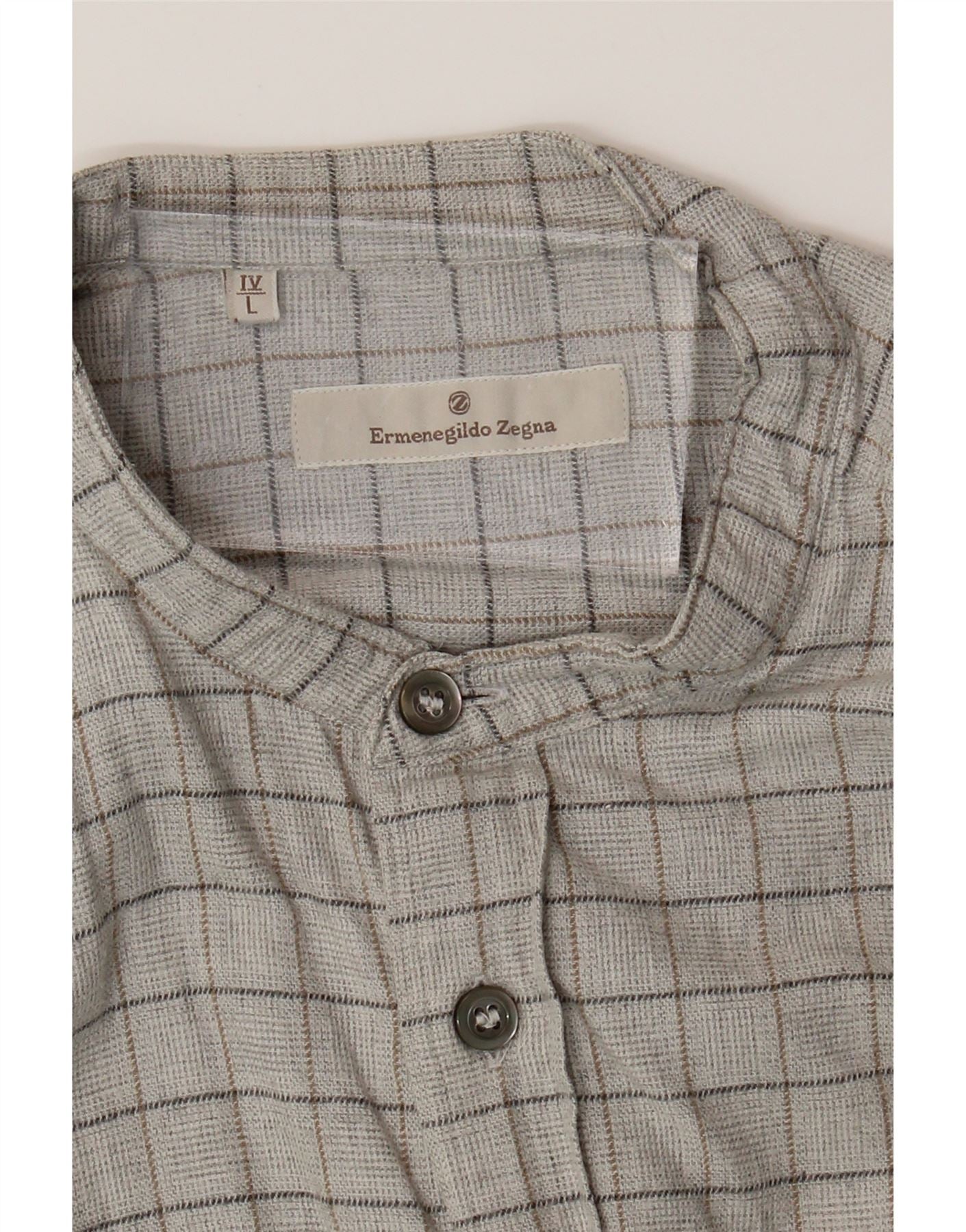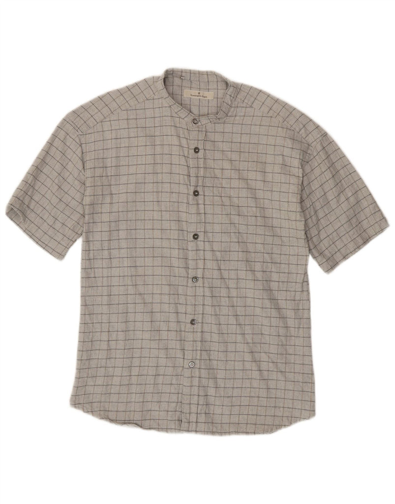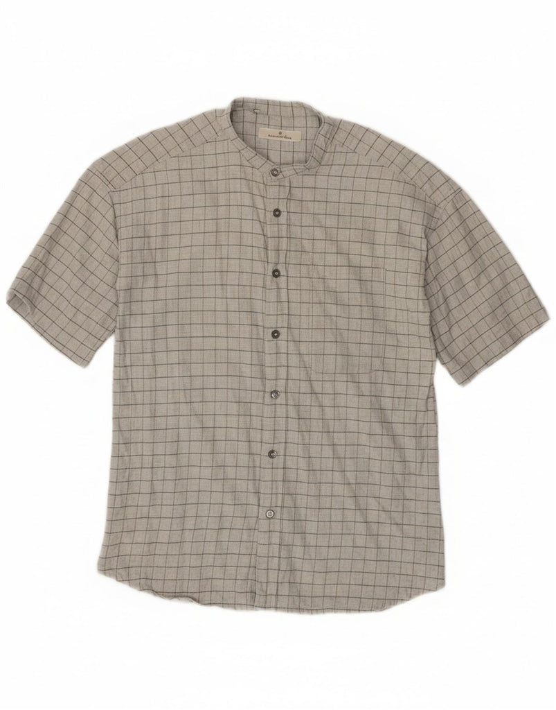 ERMENEGILDO ZEGNA Mens Short Sleeve Shirt Large Grey Check