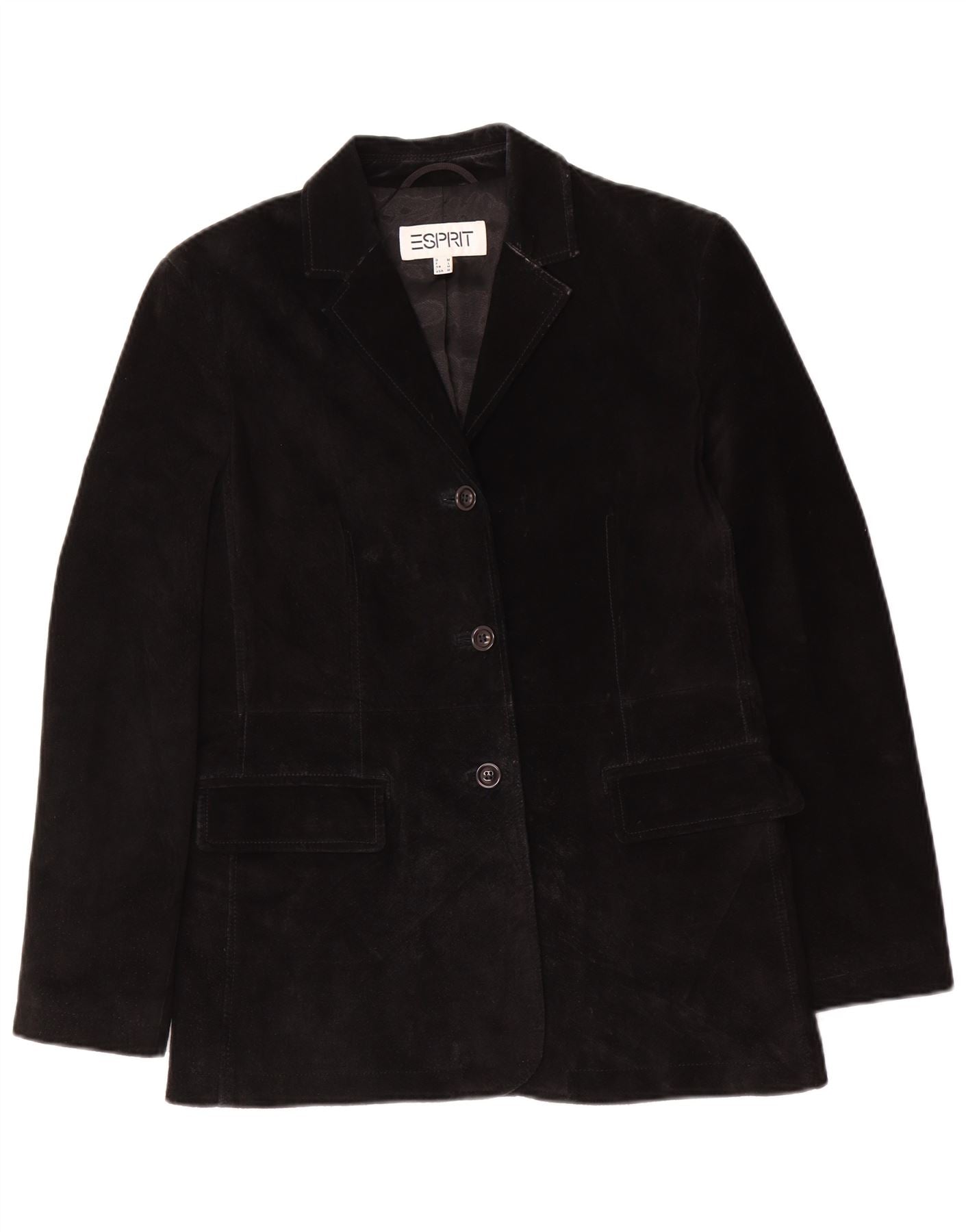 Esprit Γυναικείο τζάκετ σουέντ σακάκι με 3 κουμπιά UK 14 μεσαίο μαύρο δέρμα