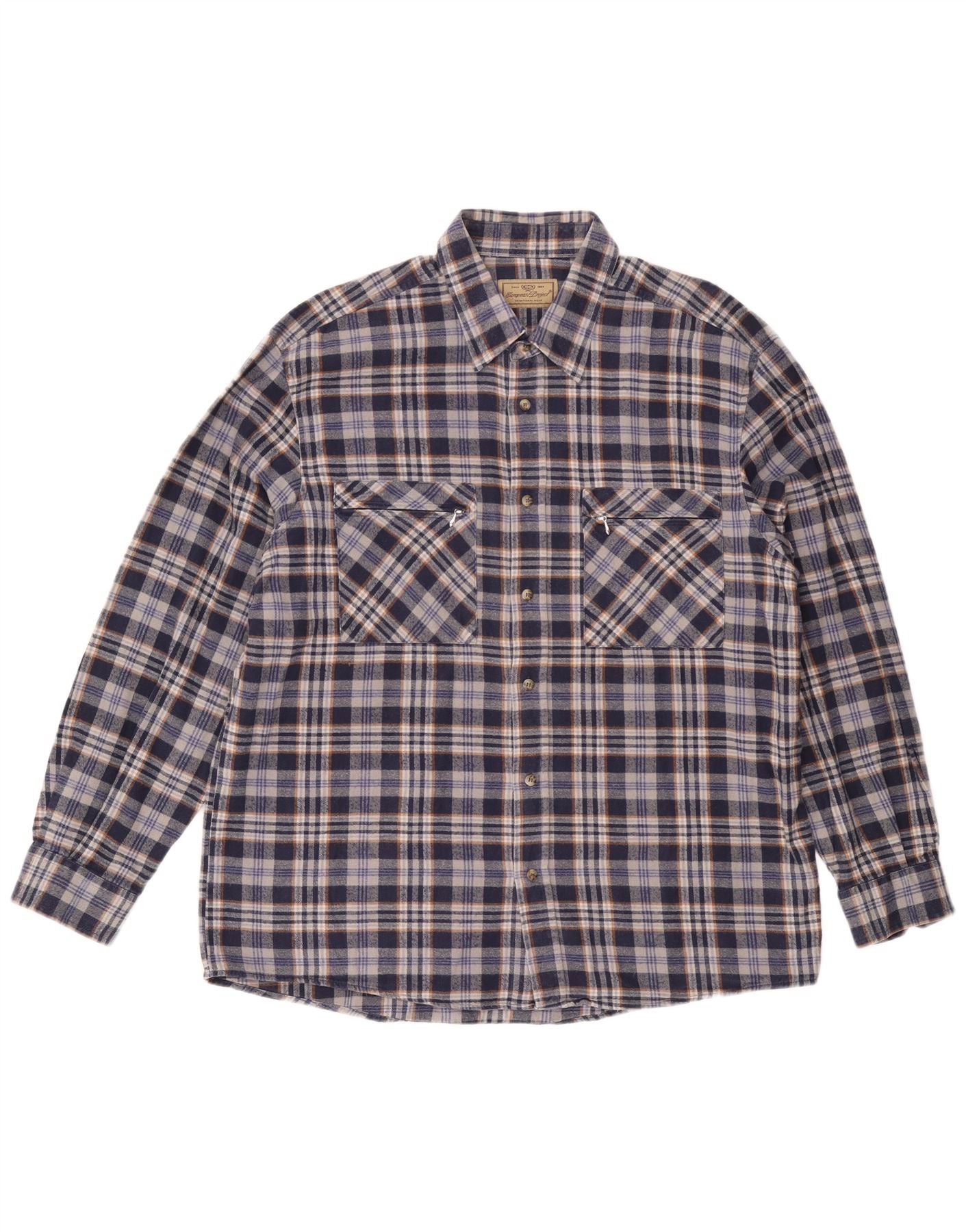 EUROPEAN PROJECT Ανδρικό φανελένιο πουκάμισο XL Navy Blue Check Cotton