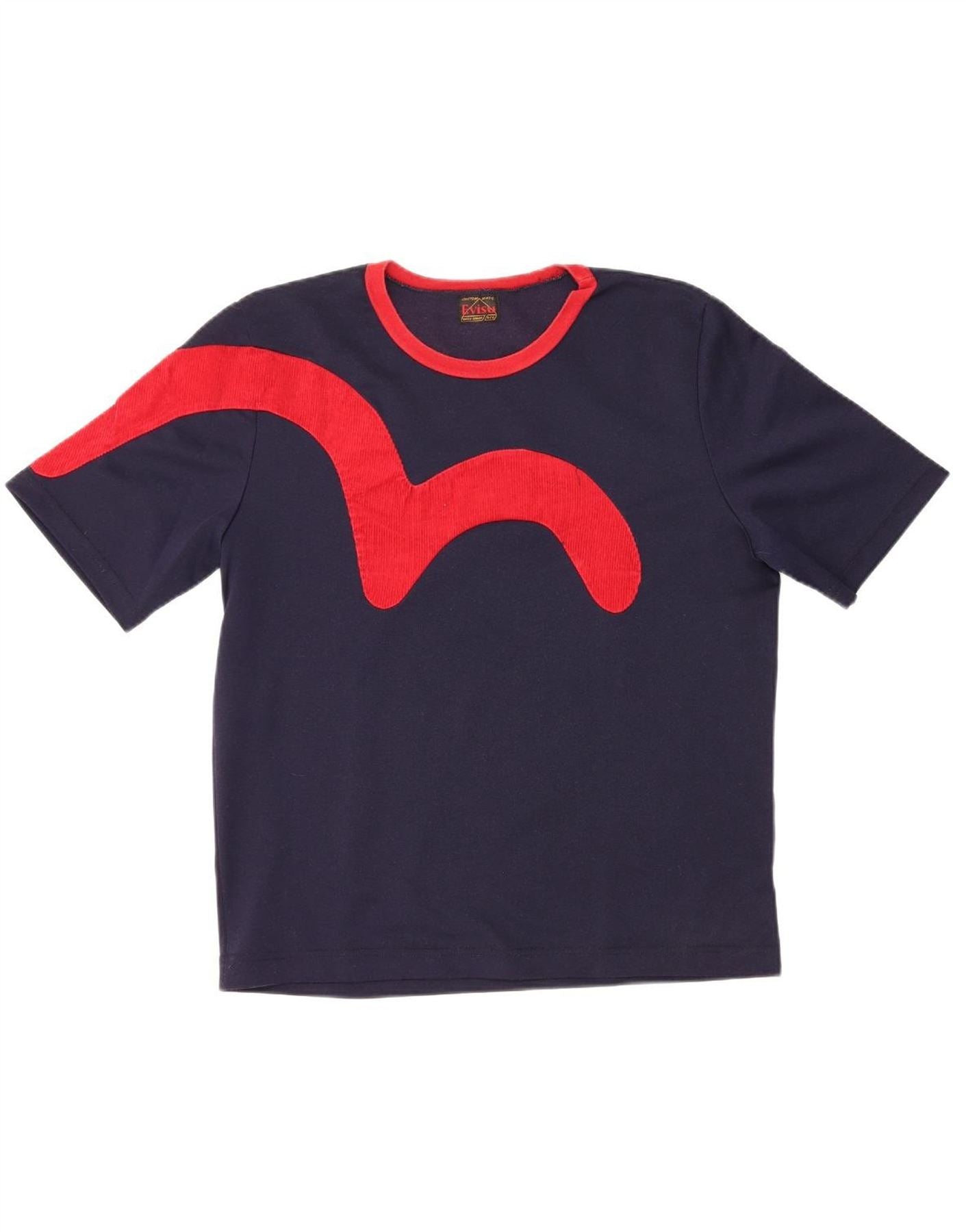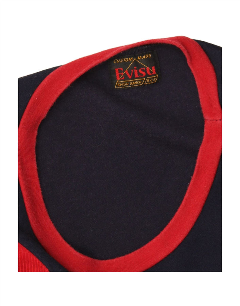 EVISU Womens T-Shirt Top UK 14 Medium Navy Blue Colourblock Polyester