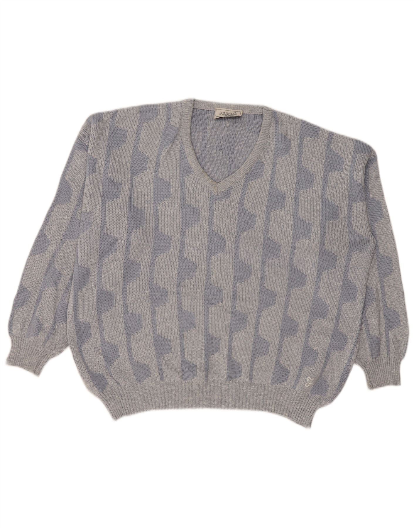Farah Ανδρικό πουλόβερ με λαιμόκοψη με λαιμόκοψη UK 42 μεγάλο μπλε γεωμετρικό ακρυλικό