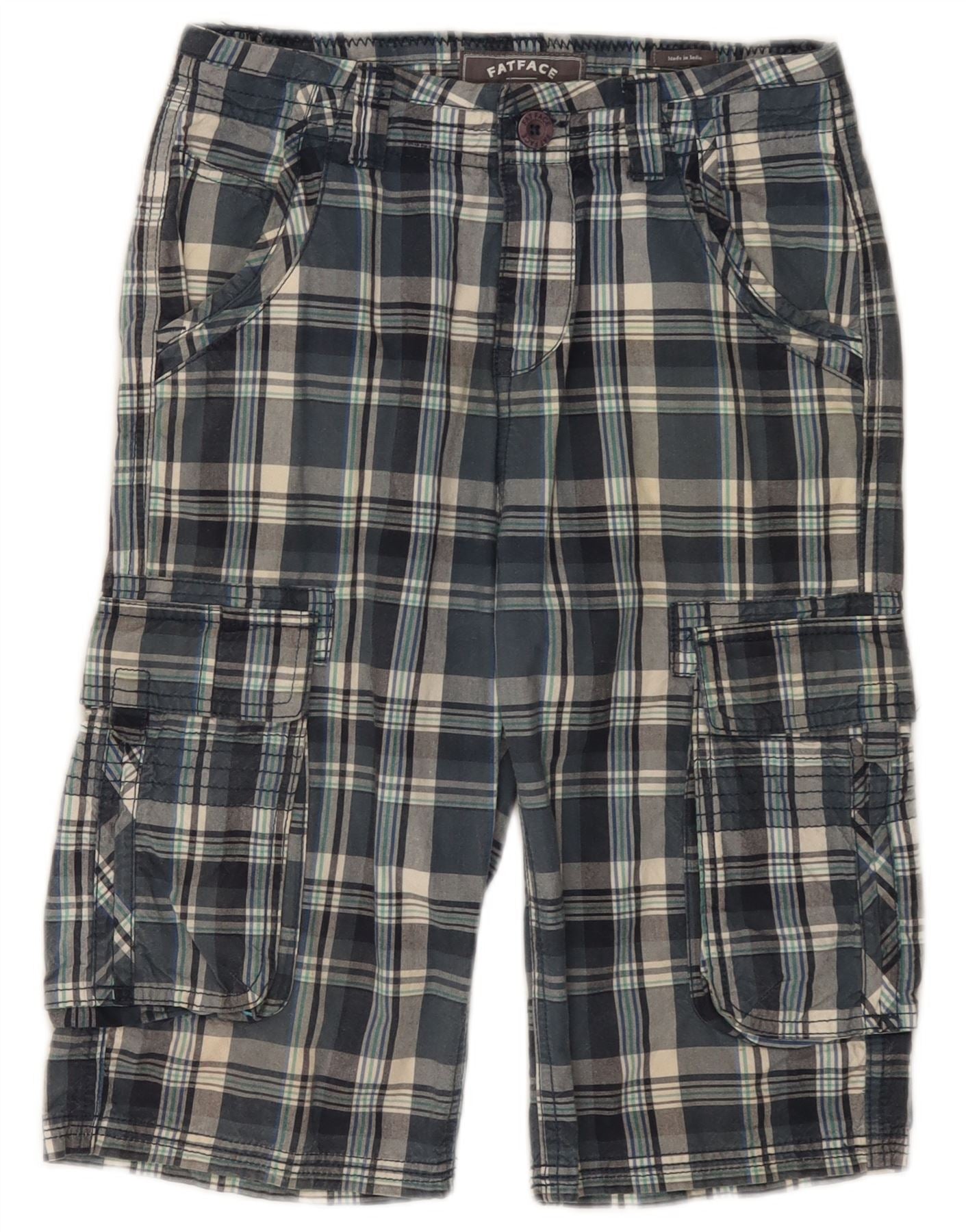 FAT FACE Boys Cargo Bermuda Shorts 12-13 ετών W26 Blue Check Cotton