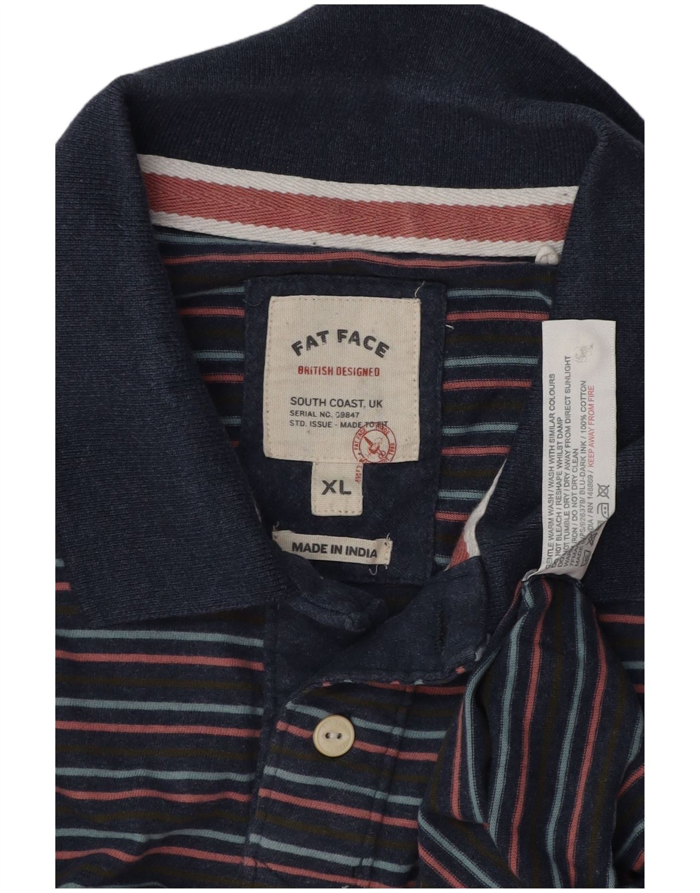 FAT FACE Ανδρικό μπλουζάκι πόλο XL Navy Blue ριγέ βαμβακερό