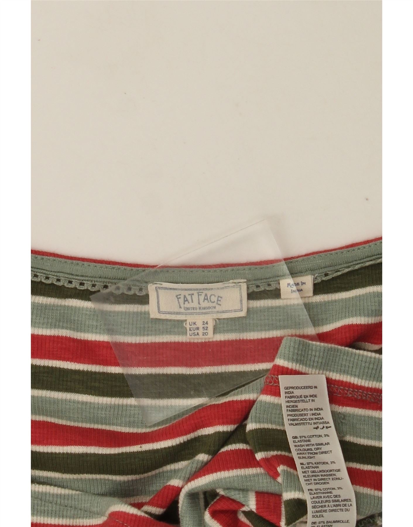 Fat Face Γυναικείο πουκάμισο Crop Μπλούζα UK 24 4XL Πράσινο ριγέ βαμβακερό
