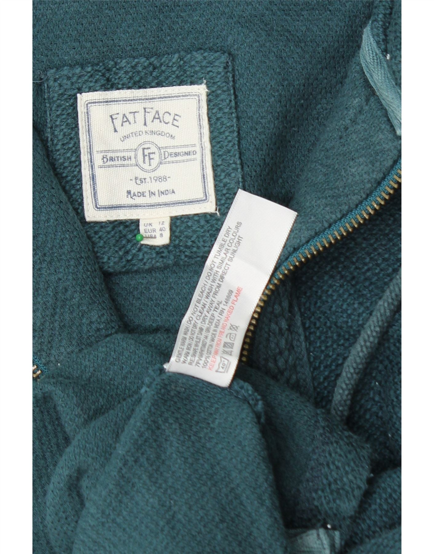 Γυναικείο πουλόβερ ζακέτα με κουκούλα FAT FACE UK 12 Βαμβακερό μεσαίο πράσινο