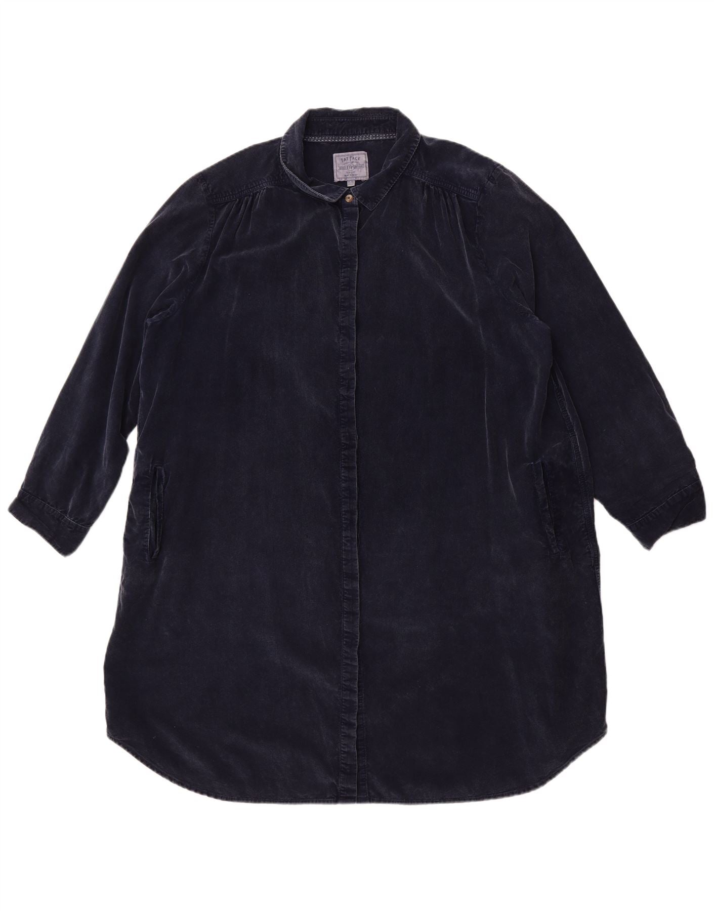 - AI Description: This Fat Face womens Tunic Top is crafted from soft navy blue corduroy, made from 100 cotton. It features a classic collared neckline and long sleeves. The relaxed fit ensures comfortable wear. A full button-up front adds traditional detail. Practical pockets complete the design. This piece offers a timeless, versatile aesthetic.