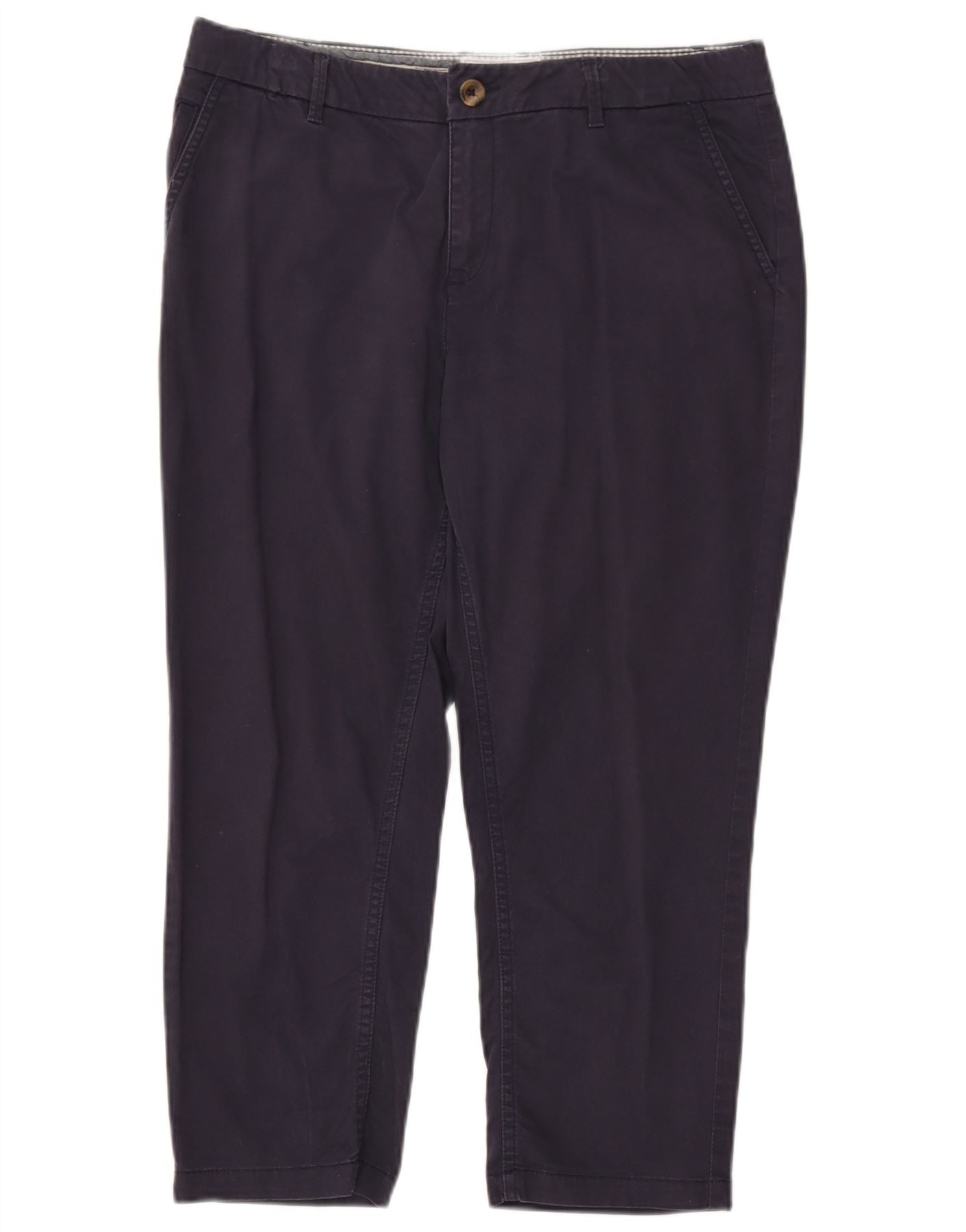 FAT FACE Womens Straight Cropped Trousers UK 14 Large W34 L23 Navy Blue