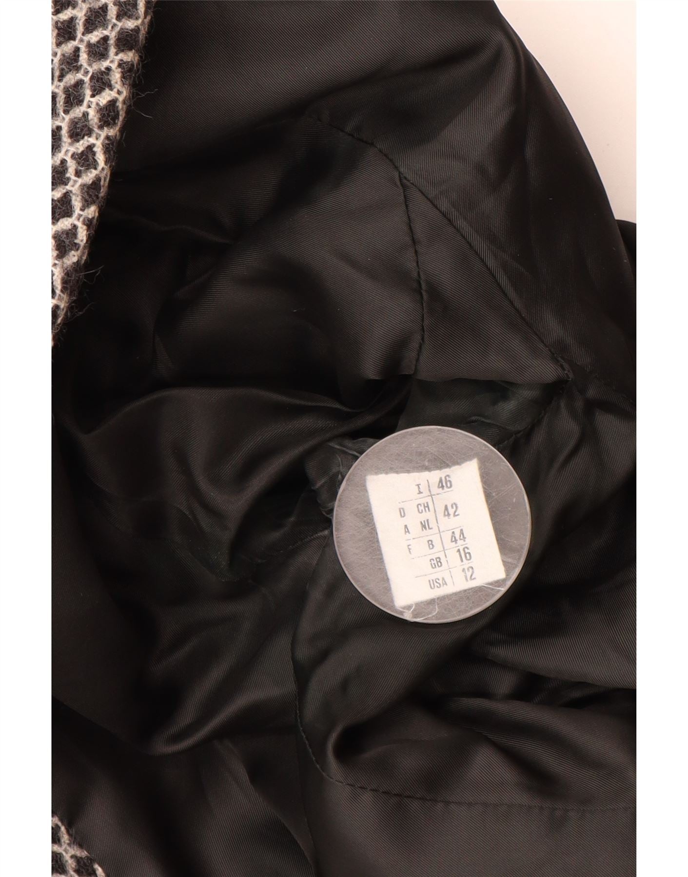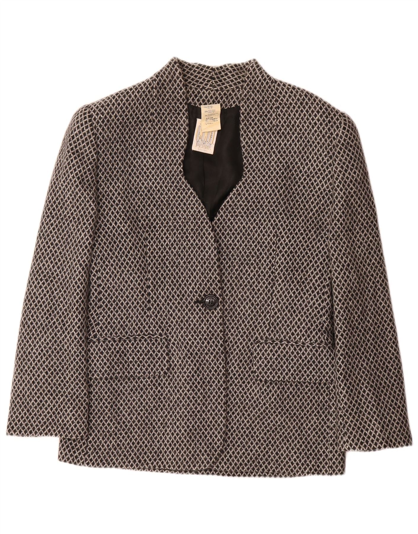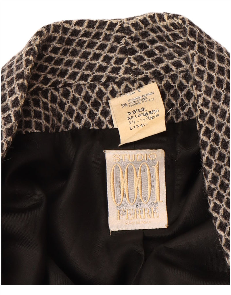 FERRE Womens 1 Button Blazer Jacket UK 16 Large Black Argyle/Diamond Wool