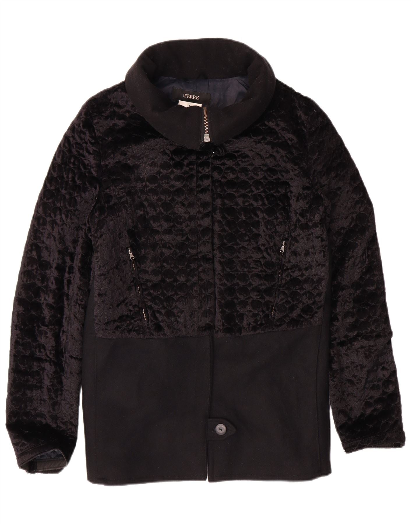 FERRE Γυναικείο Βελούδινο Μπουφάν UK 14 Large Black Wool Classic