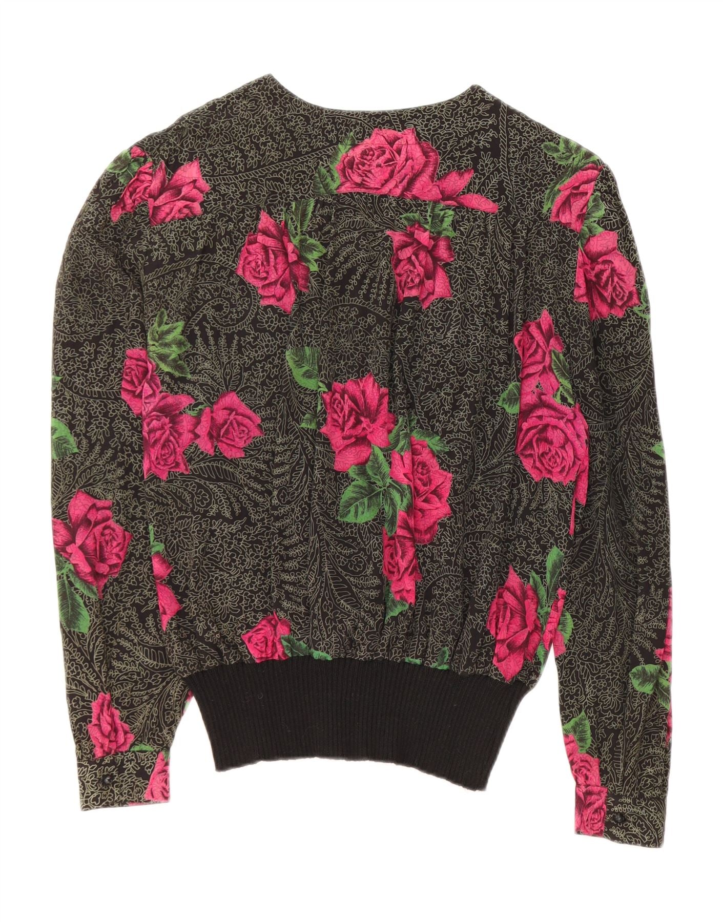 Γυναικεία μακρυμάνικη μπλούζα FERRETTI Top IT 48 XL Μαύρο φλοράλ μετάξι