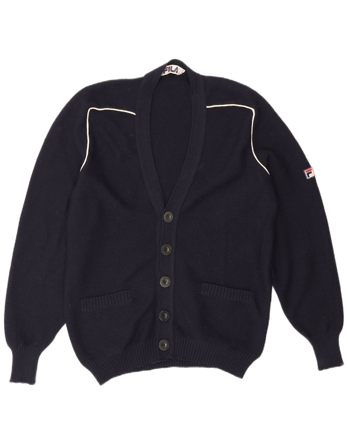 - Περιγραφή AI: Αυτό το ανδρικό πουλόβερ ζακέτα Fila είναι φτιαγμένο από πολυτελές πλεκτό 100 τοις εκατό παρθένο μαλλί, προσφέροντας εξαιρετική άνεση. Διαθέτει κλασική λαιμόκοψη σε σχήμα V και μπροστινό μέρος με πλήρη κουμπιά. Τα μακριά μανίκια και η κανονική εφαρμογή εξασφαλίζουν μια άνετη σιλουέτα. Οι χαρακτηριστικές λευκές σωληνώσεις τονίζουν τους ώμους και τα μανίκια. Δύο πρακτικές μπροστινές τσέπες προσθέτουν λειτουργικότητα. Ένα διακριτικό λογότυπο Fila είναι κεντημένο στο μανίκι, ολοκληρώνοντας το ρετρό σχέδιο.