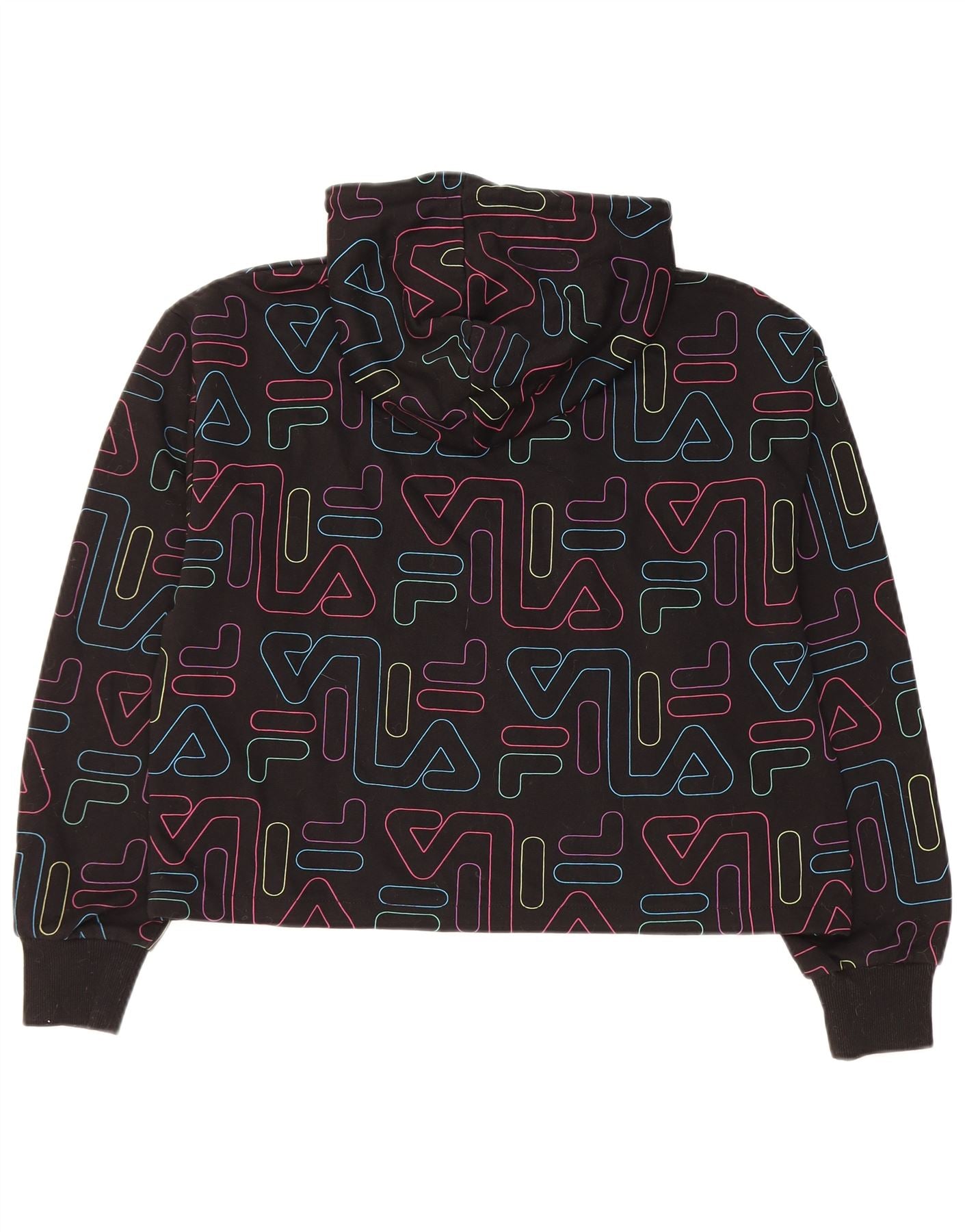 FILA Γυναικείο Crop Graphic Hoodie Jumper UK 14 Medium Black Cotton