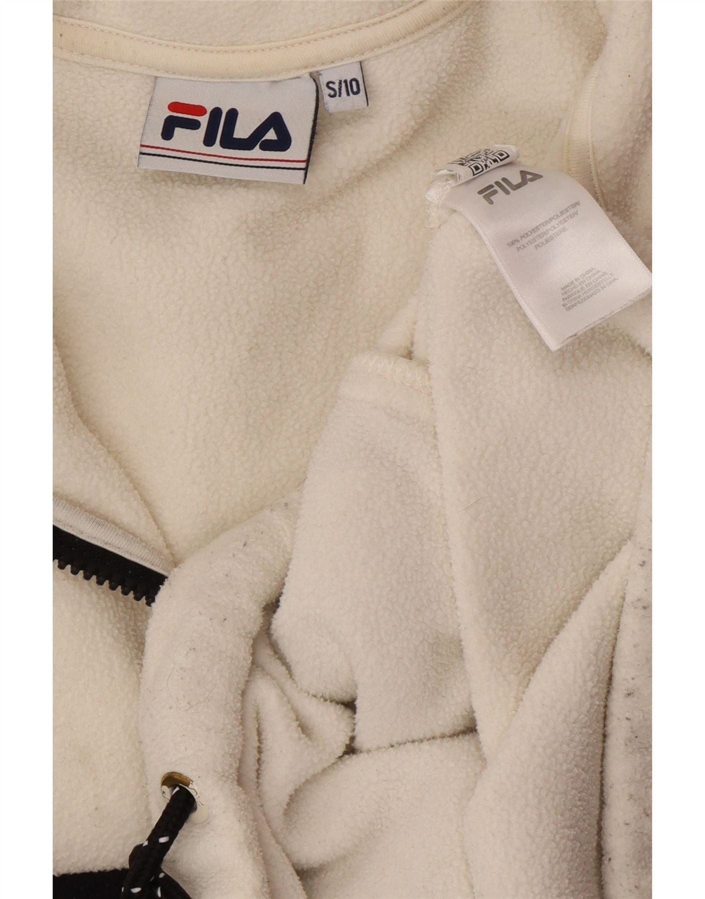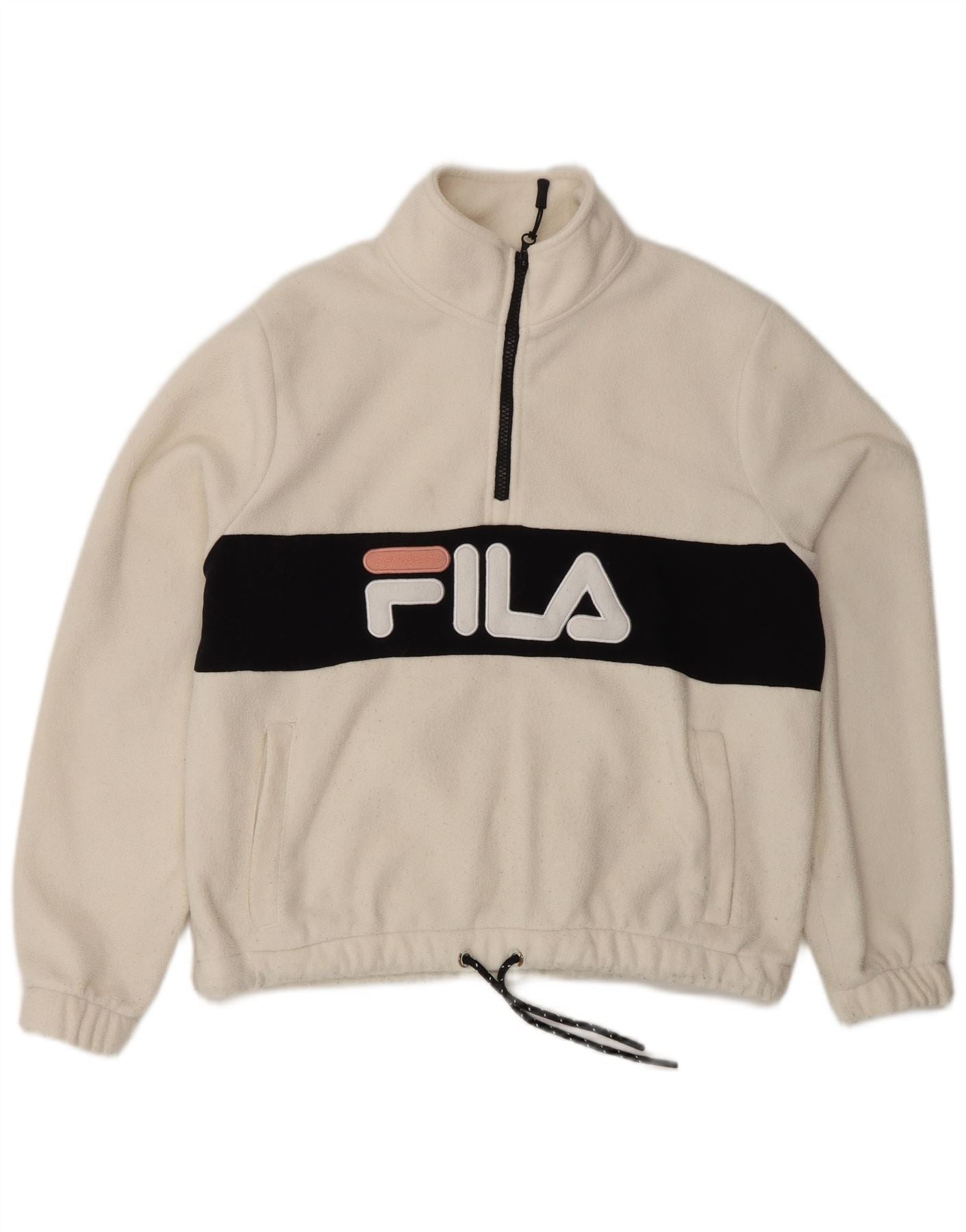 FILA Γυναικεία υπερμεγέθη γραφικά φλις jumper UK 10 Small White Colourblock