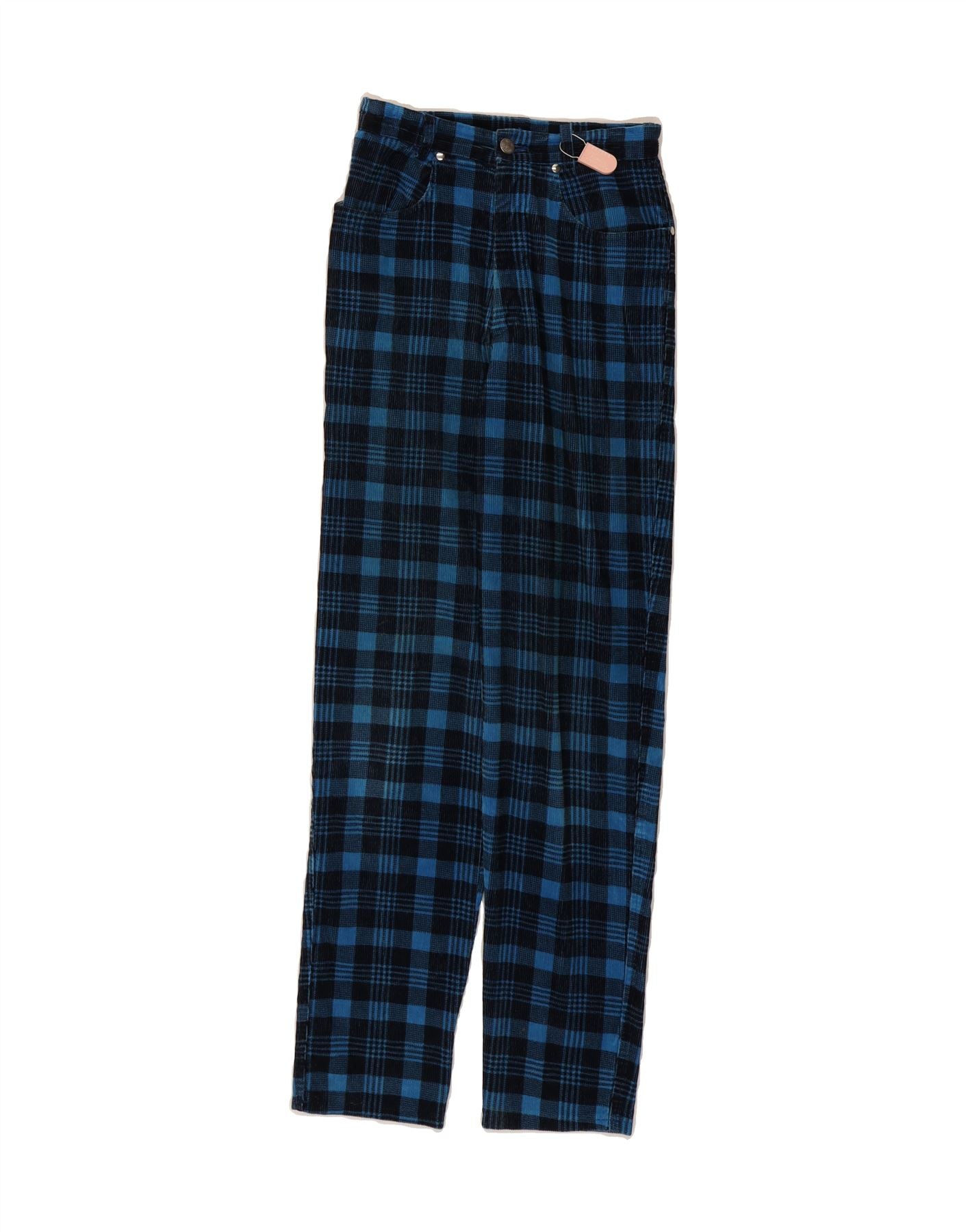 FIORUCCI Womens Straight Corduroy Trousers W24 L32 Blue Check Cotton
