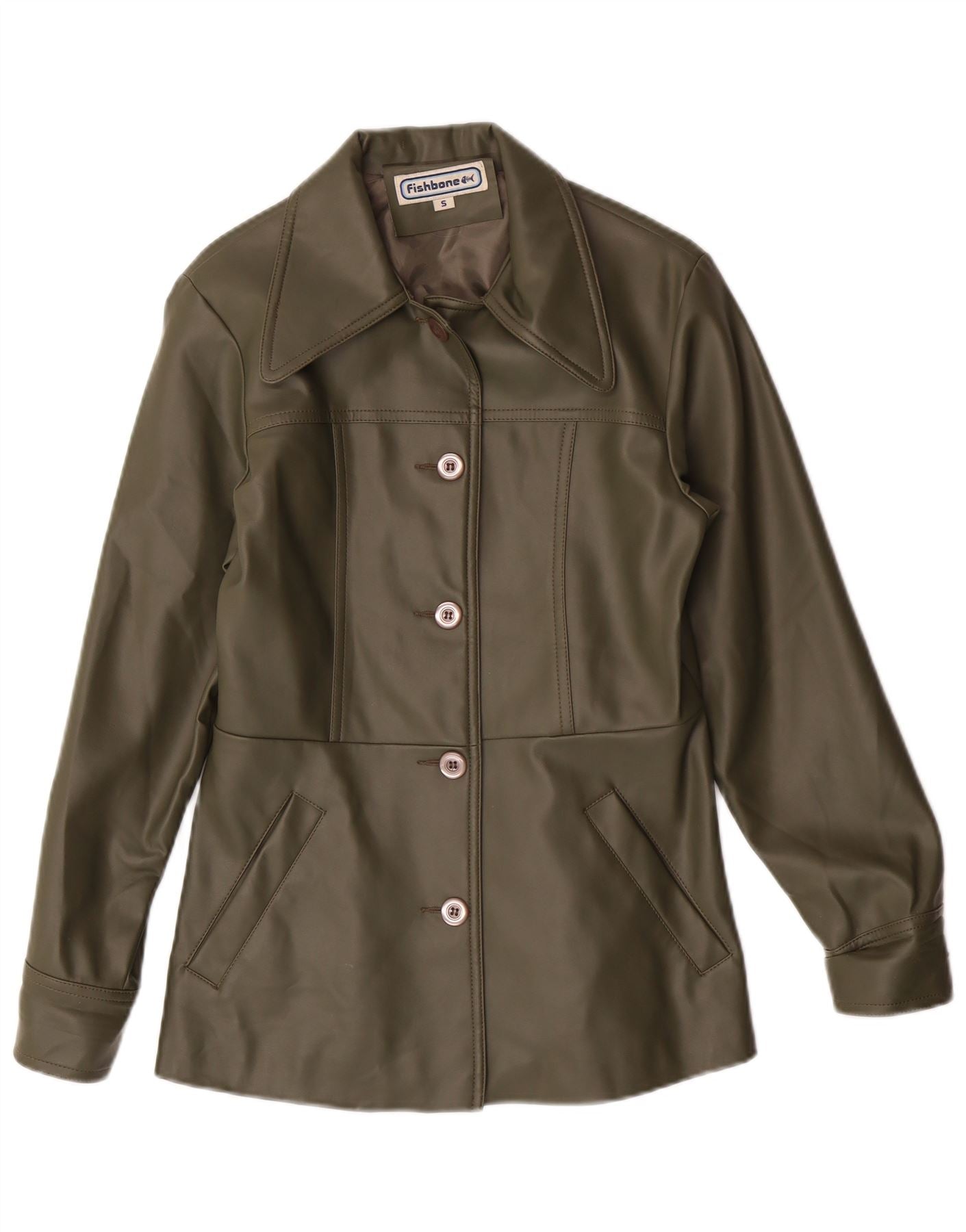 Γυναικείο μπουφάν FISHBONE από συνθετικό δέρμα UK 10 Μικρή Πράσινη Πολυουρεθάνη