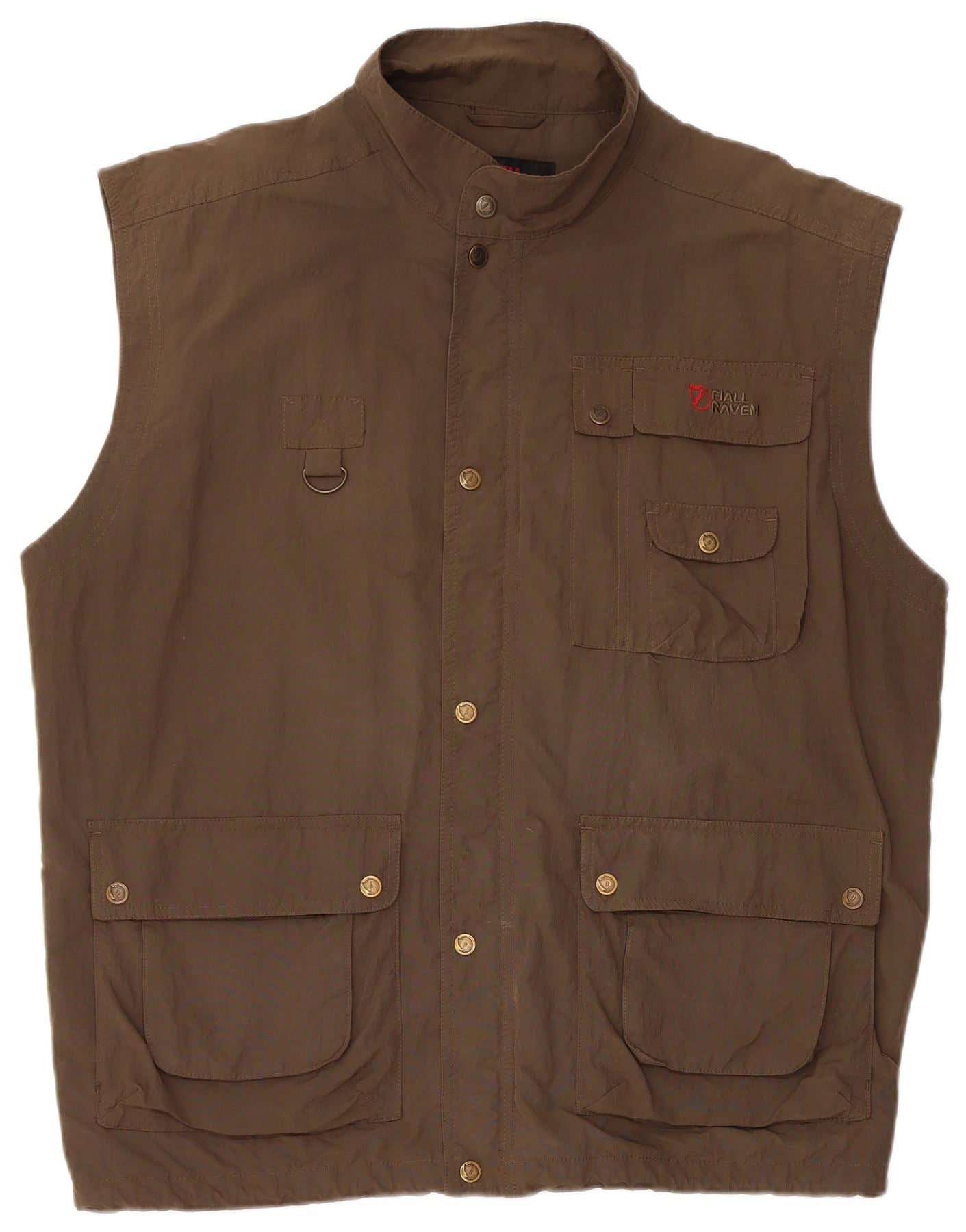 - AI Description: This Fjall Raven mens waistcoat is crafted from a durable polyester and cotton blend fabric. Its classic brown hue offers versatile styling. The collared neckline and six-button front closure provide a traditional, smart look. It features practical pockets for convenience. A regular fit ensures comfortable wear, making it a timeless layering piece.