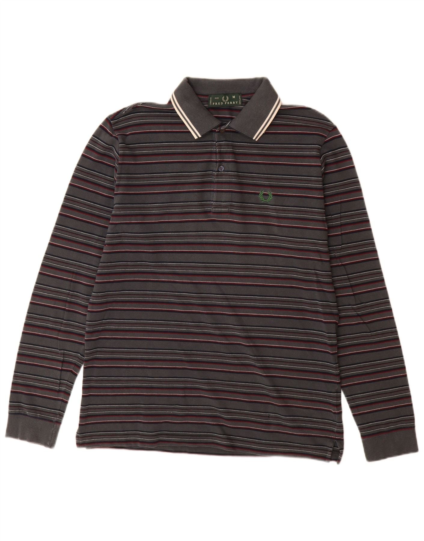 FRED PERRY Ανδρικό μακρυμάνικο μπλουζάκι πόλο με μεσαίο γκρι βαμβακερό ριγέ
