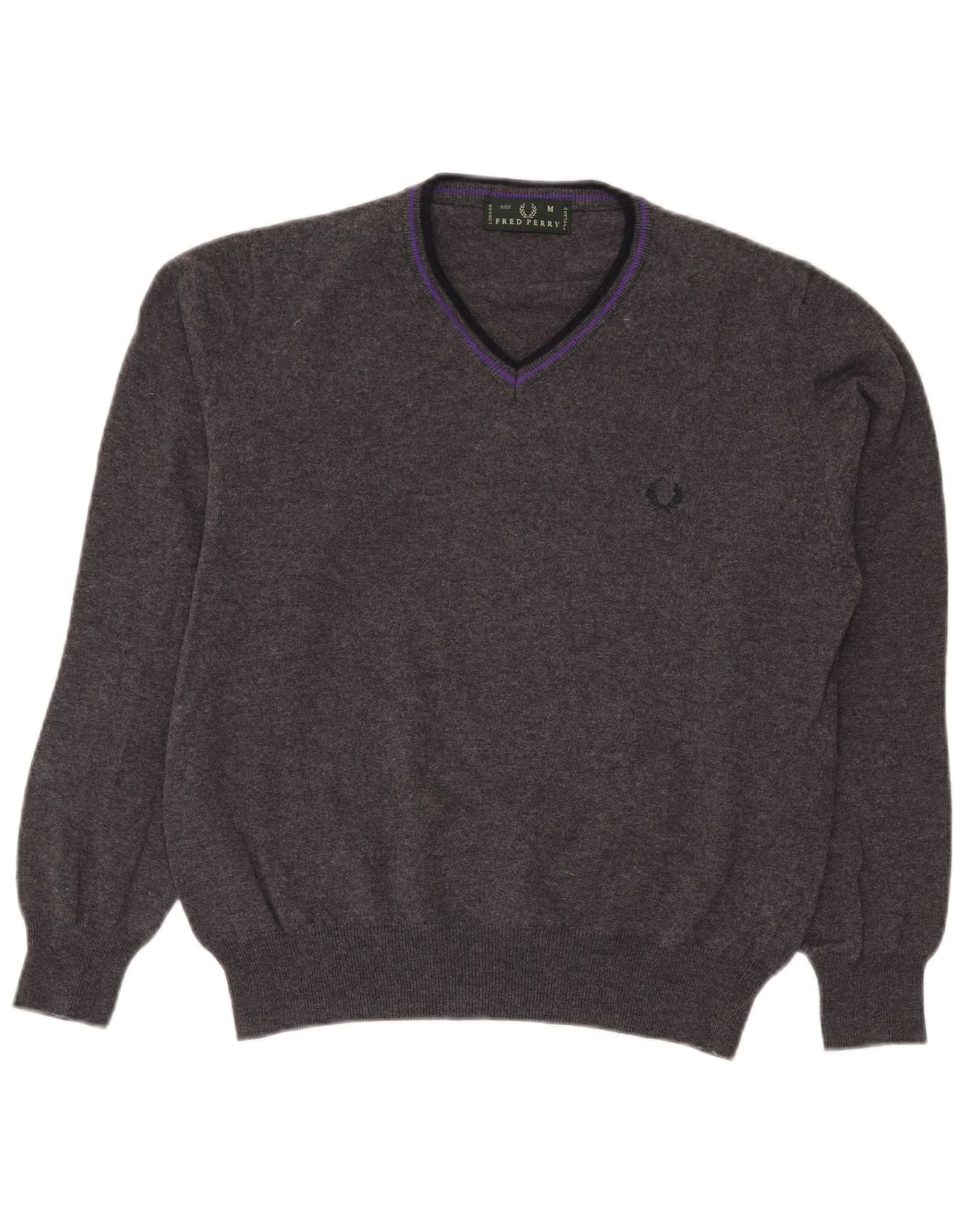 FRED PERRY Ανδρικό πουλόβερ με λαιμόκοψη με λαιμόκοψη με μεσαίο γκρι μαλλί