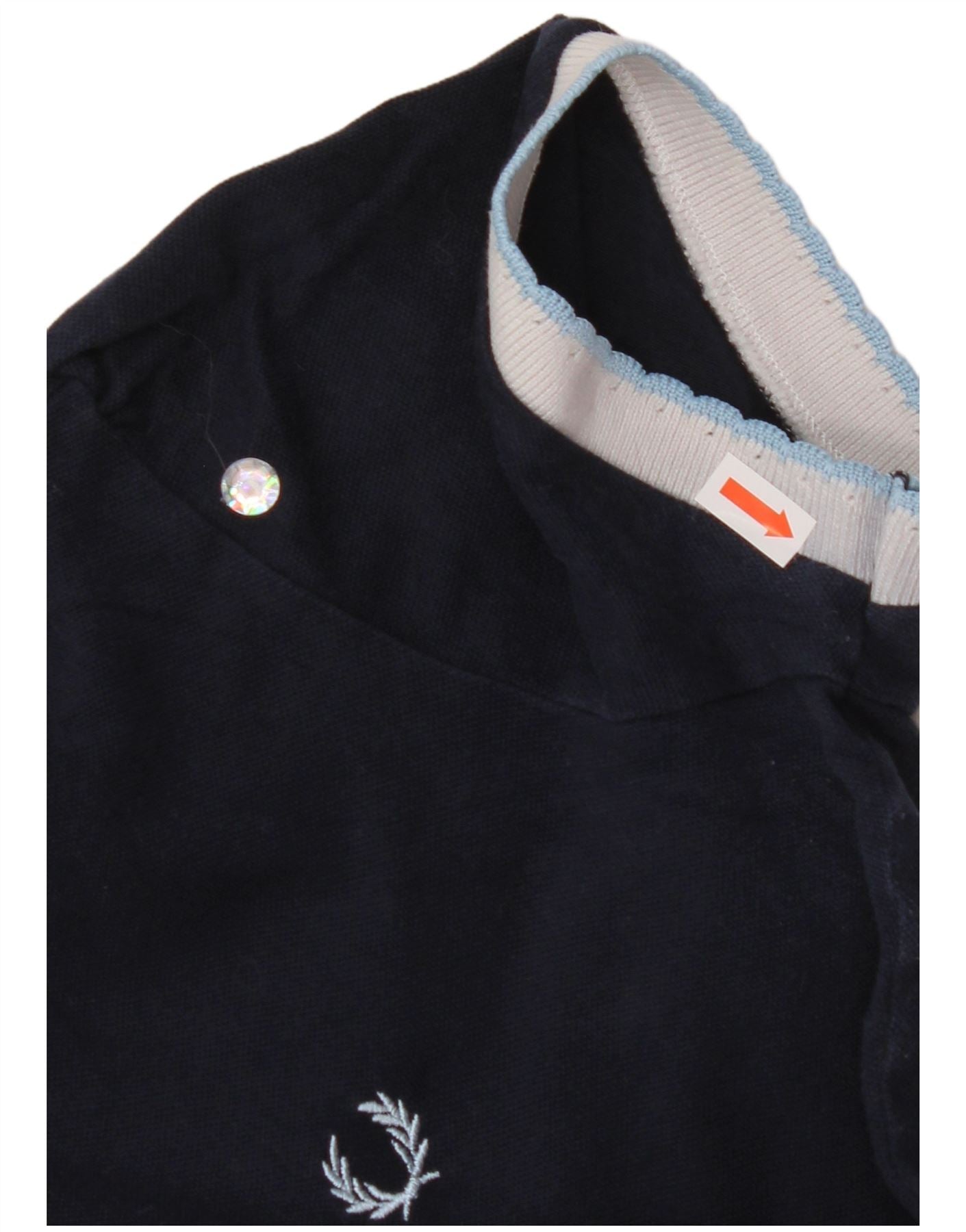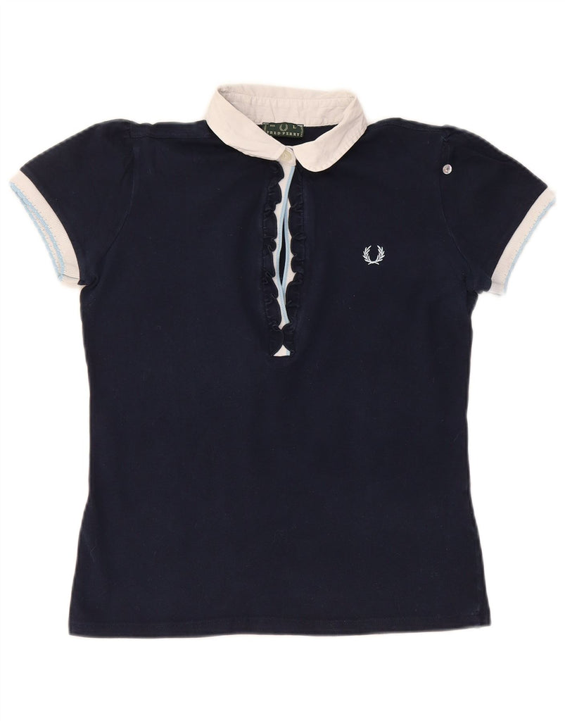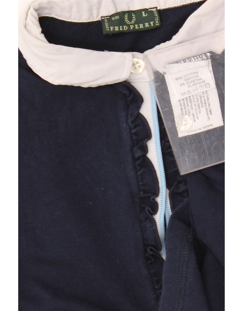 FRED PERRY Γυναικείο Crop Polo UK 14 Large Navy Blue Colourblock Βαμβακερό
