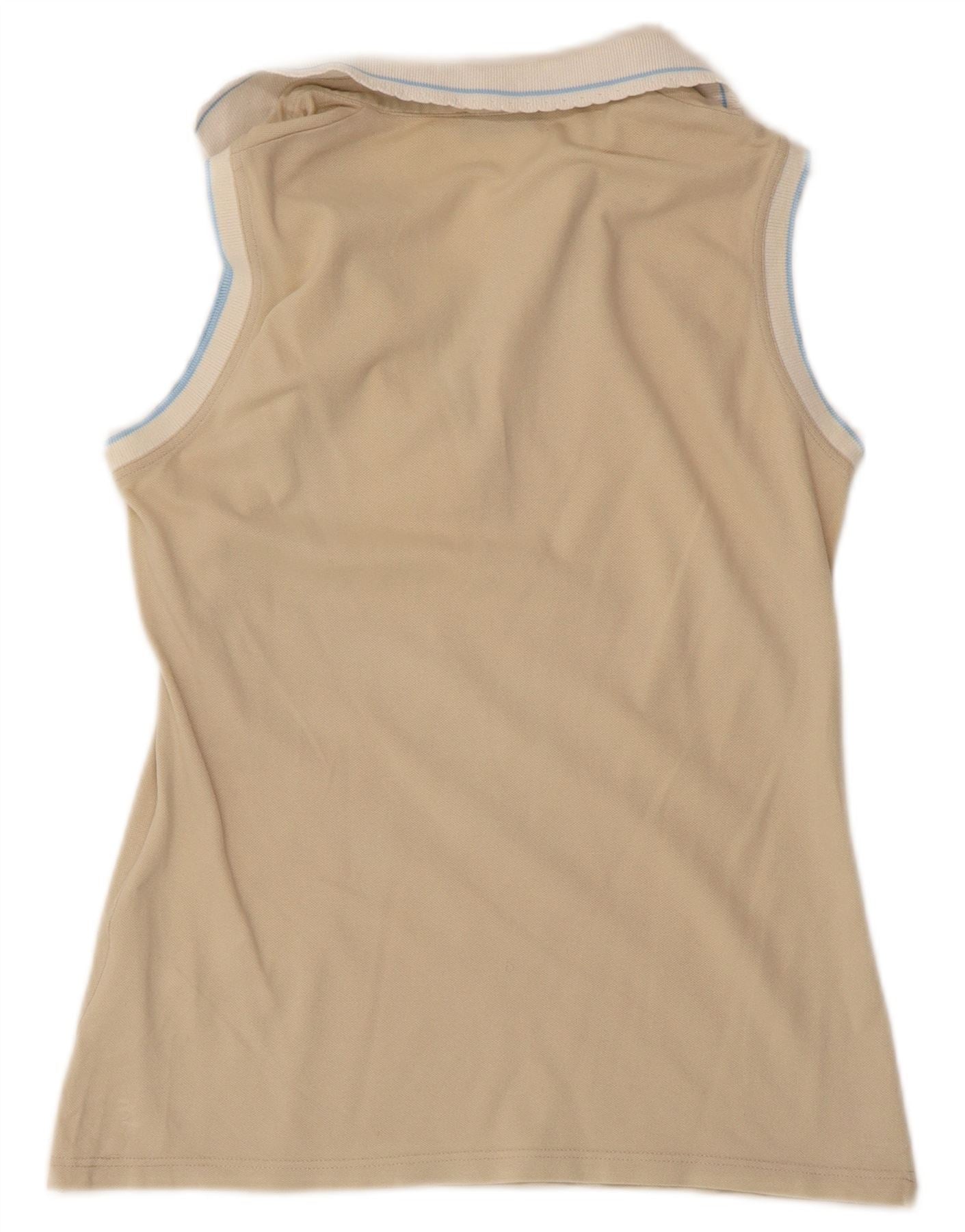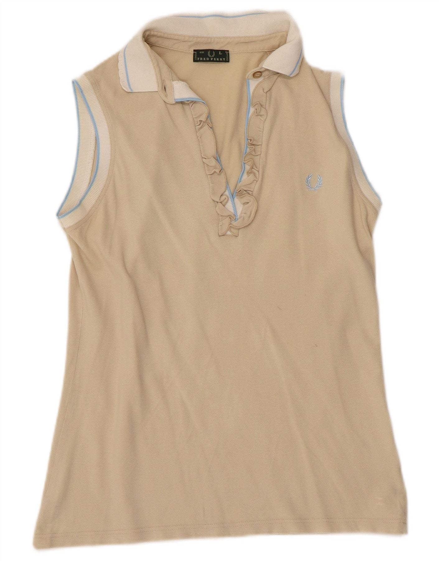FRED PERRY Womens Ruffle Front Polo Shirt UK 14 Large Beige Colourblock
