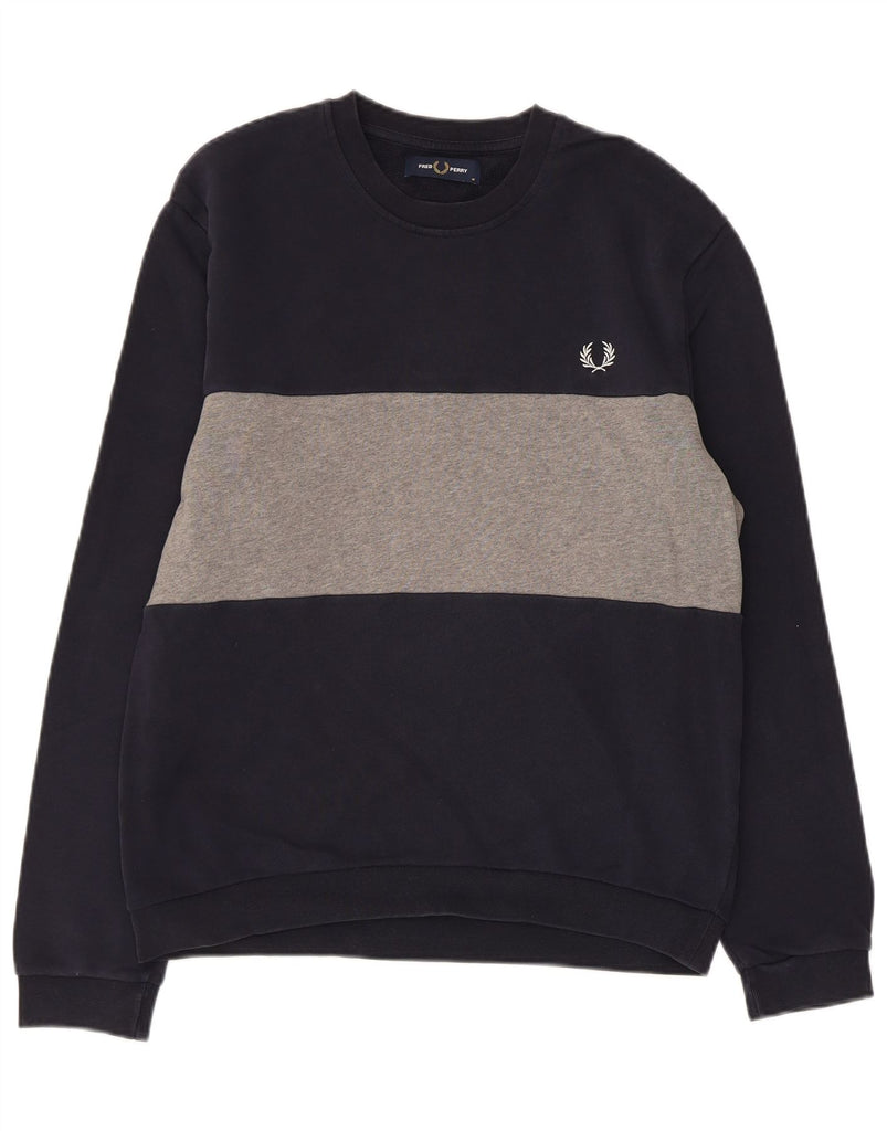 FRED PERRY Γυναικείο φούτερ Jumper UK 14 Medium Navy Blue Colourblock