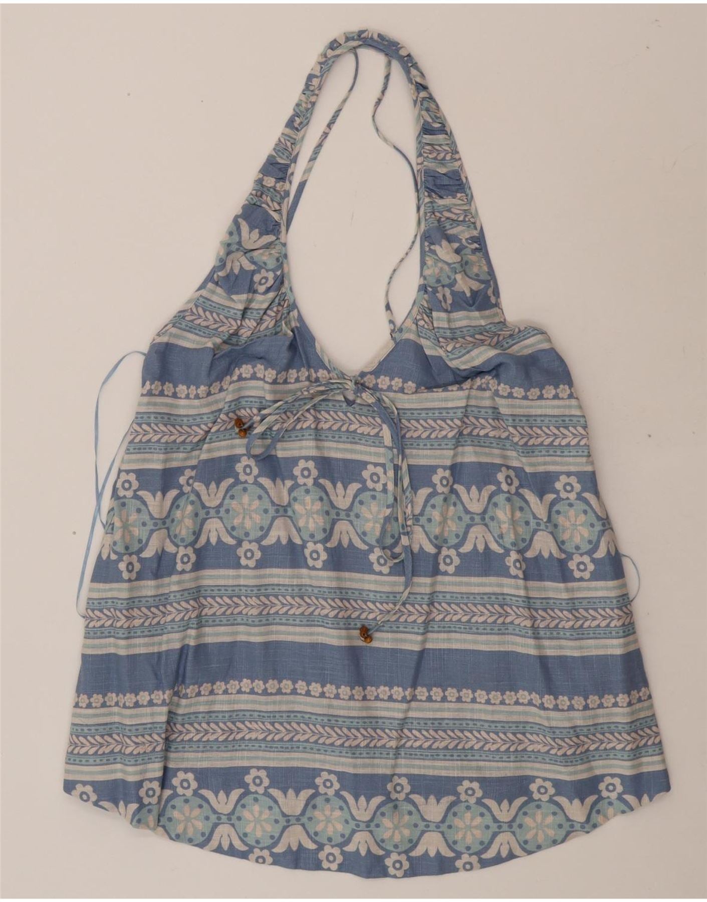 FREE PEOPLE Womens Halter Top UK 14 Medium Blue Floral
