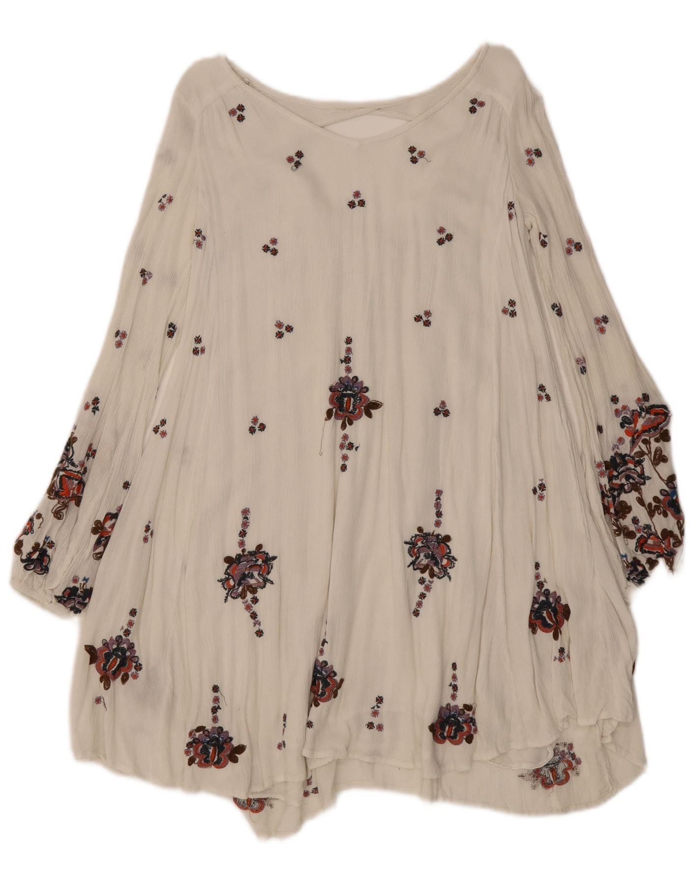 FREE PEOPLE Womens Long Sleeve Tunic Dress UK 10 Small White Floral