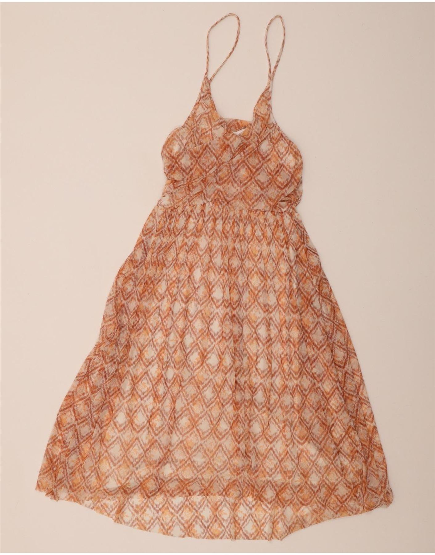 FREE PEOPLE Womens Slim Fit Slip Dress UK 14 Large Orange Geometric