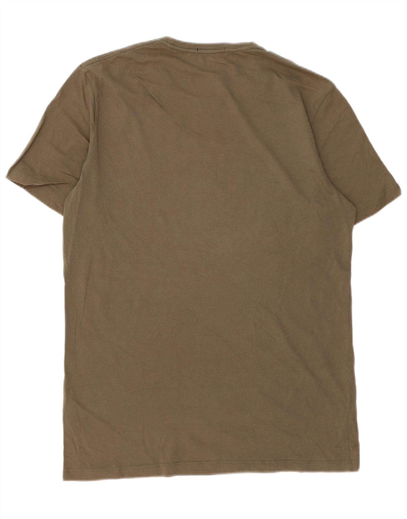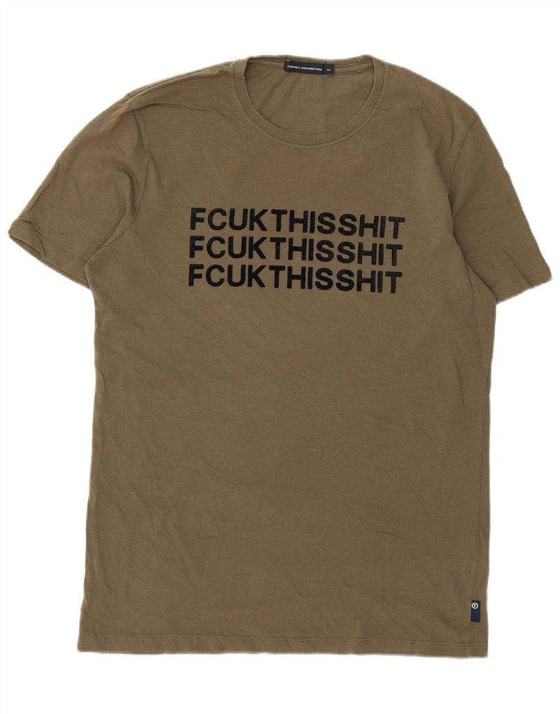 FRENCH CONNECTION Mens Graphic T-Shirt Top Medium Khaki Cotton