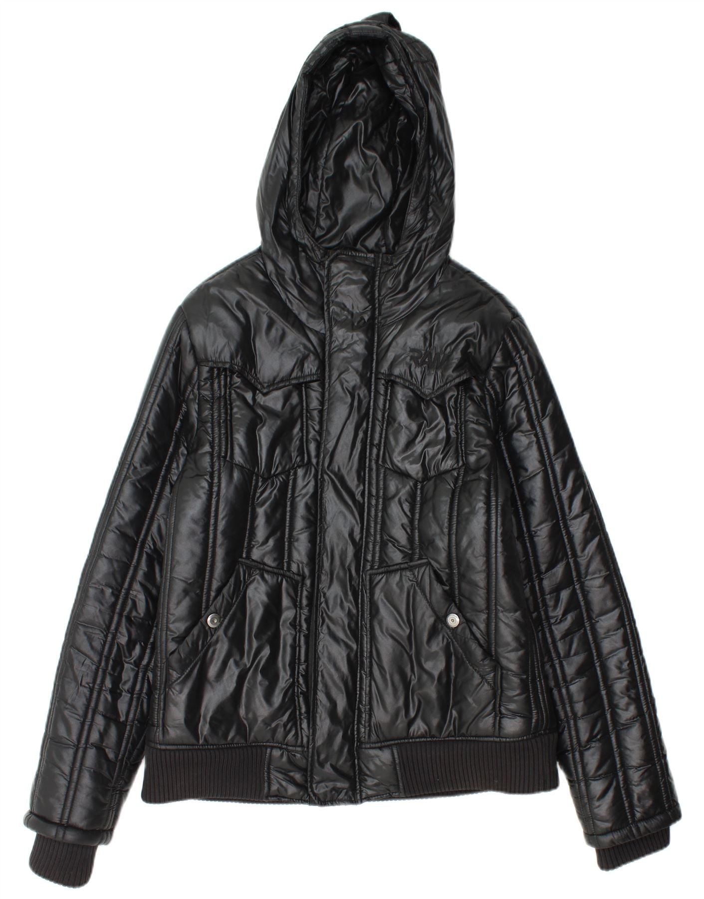 G-STAR Γυναικείο μπουφάν με κουκούλα UK 16 μεγάλο μαύρο πολυαμίδιο