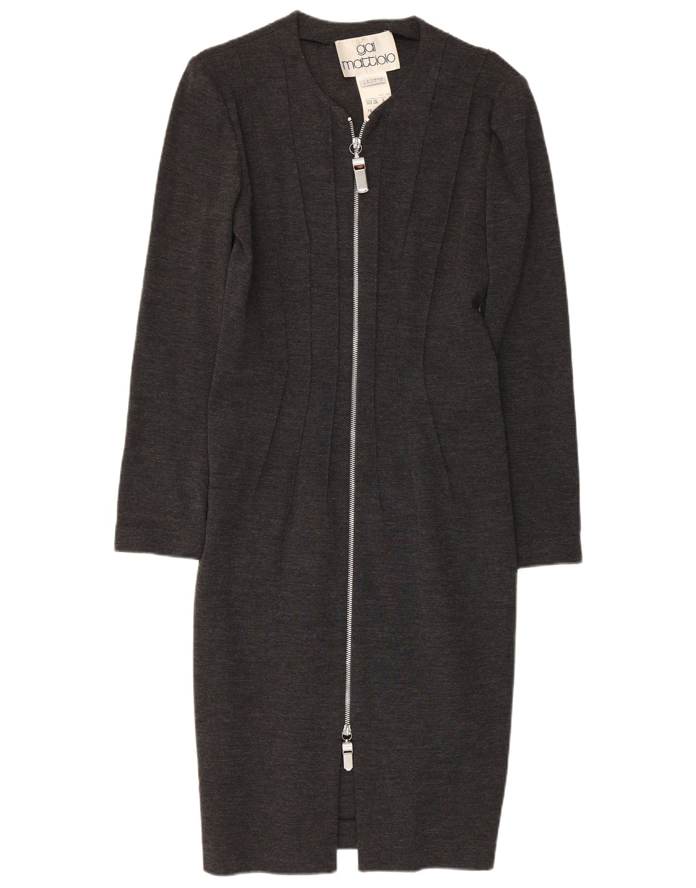GAI MATTIOLO Γυναικείο μακρυμάνικο Bodycon φόρεμα UK 16 μεγάλο γκρι παρθένο μαλλί