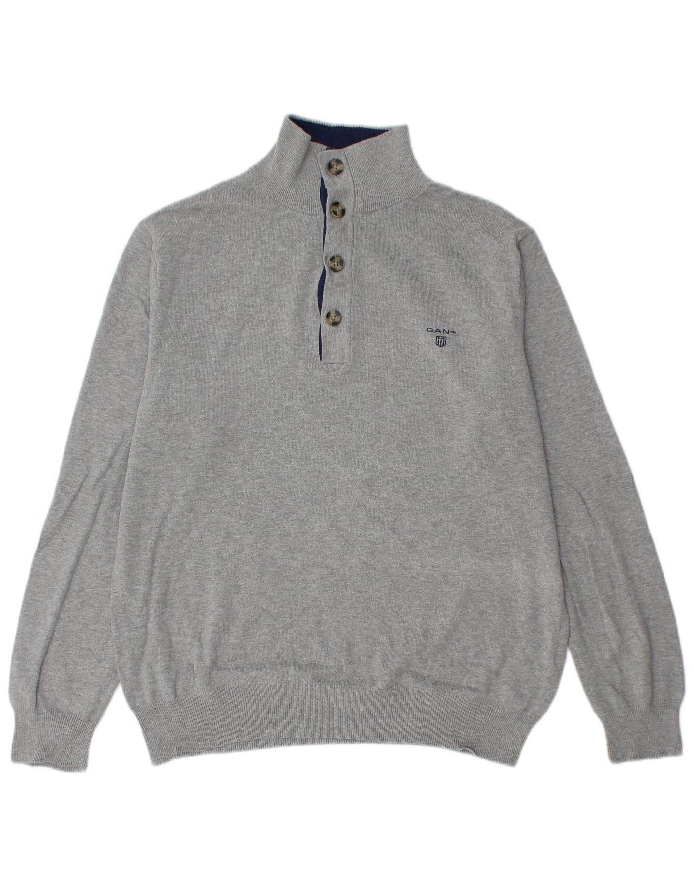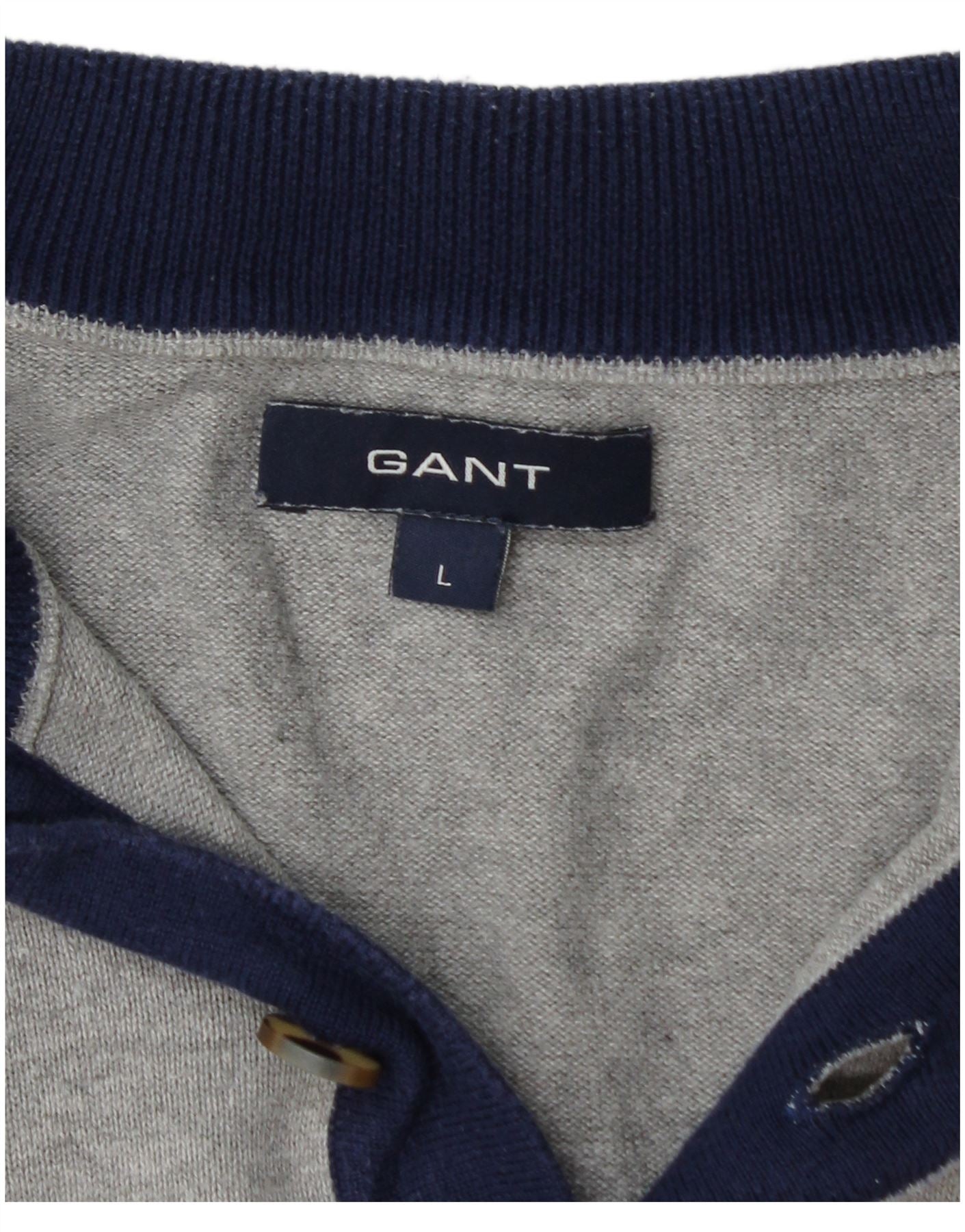 Ανδρικό πουλόβερ GANT με κουμπιά για λαιμό, μεγάλο γκρι βαμβακερό
