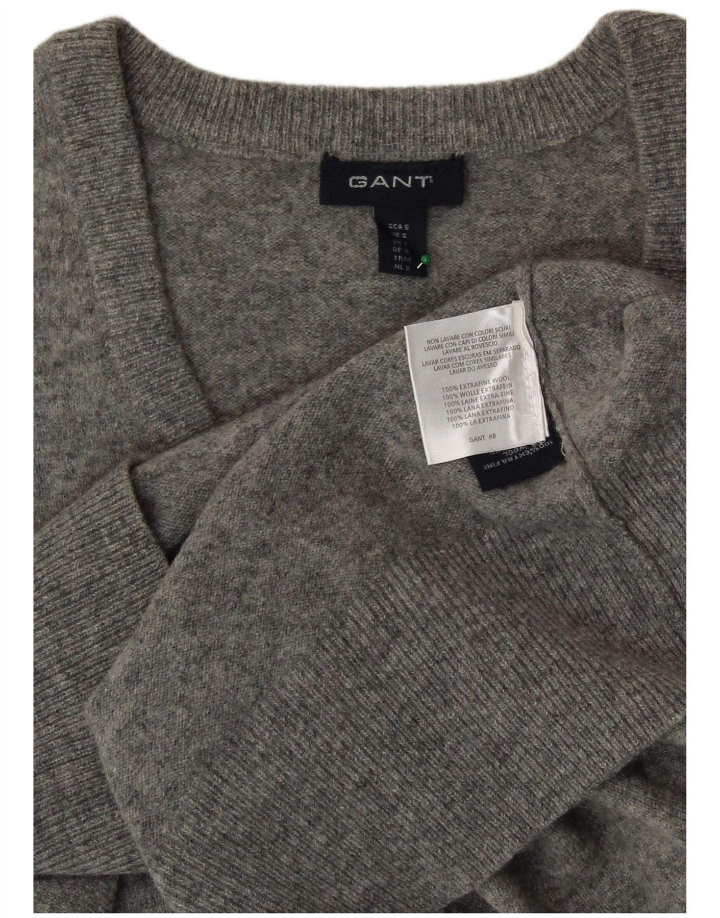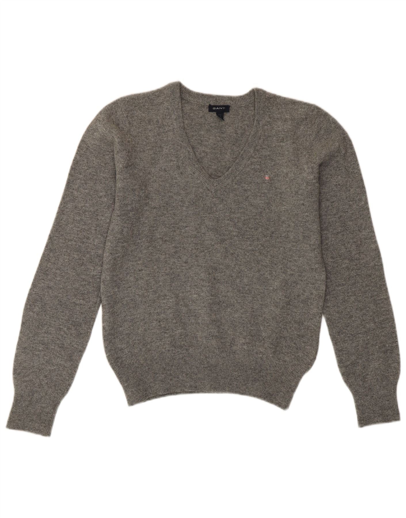 Γυναικείο πουλόβερ GANT Crop με V λαιμόκοψη UK 10 Small Grey Wool
