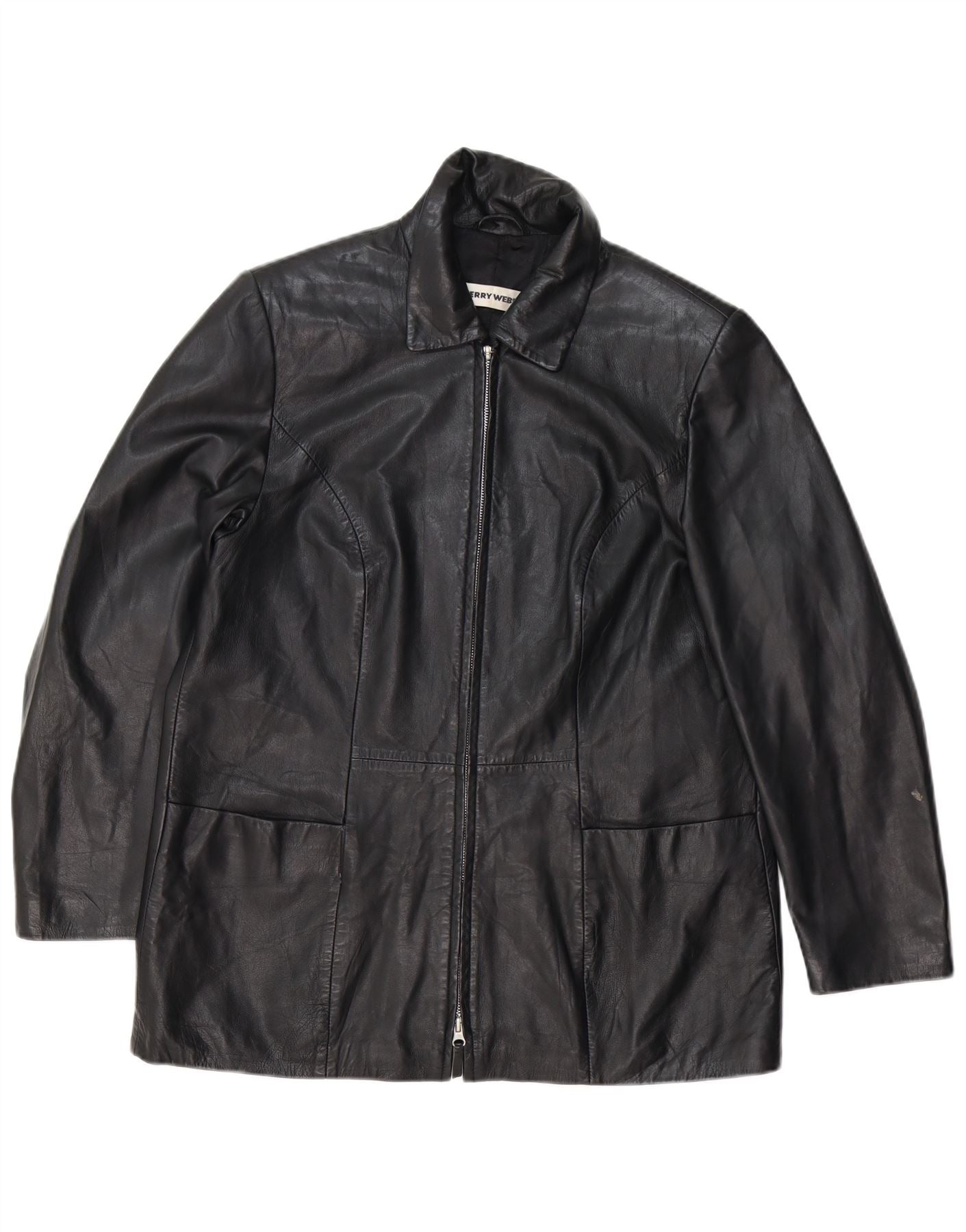GERRY WEBER Γυναικείο Δερμάτινο Παλτό UK 16 Large Μαύρο Δερμάτινο