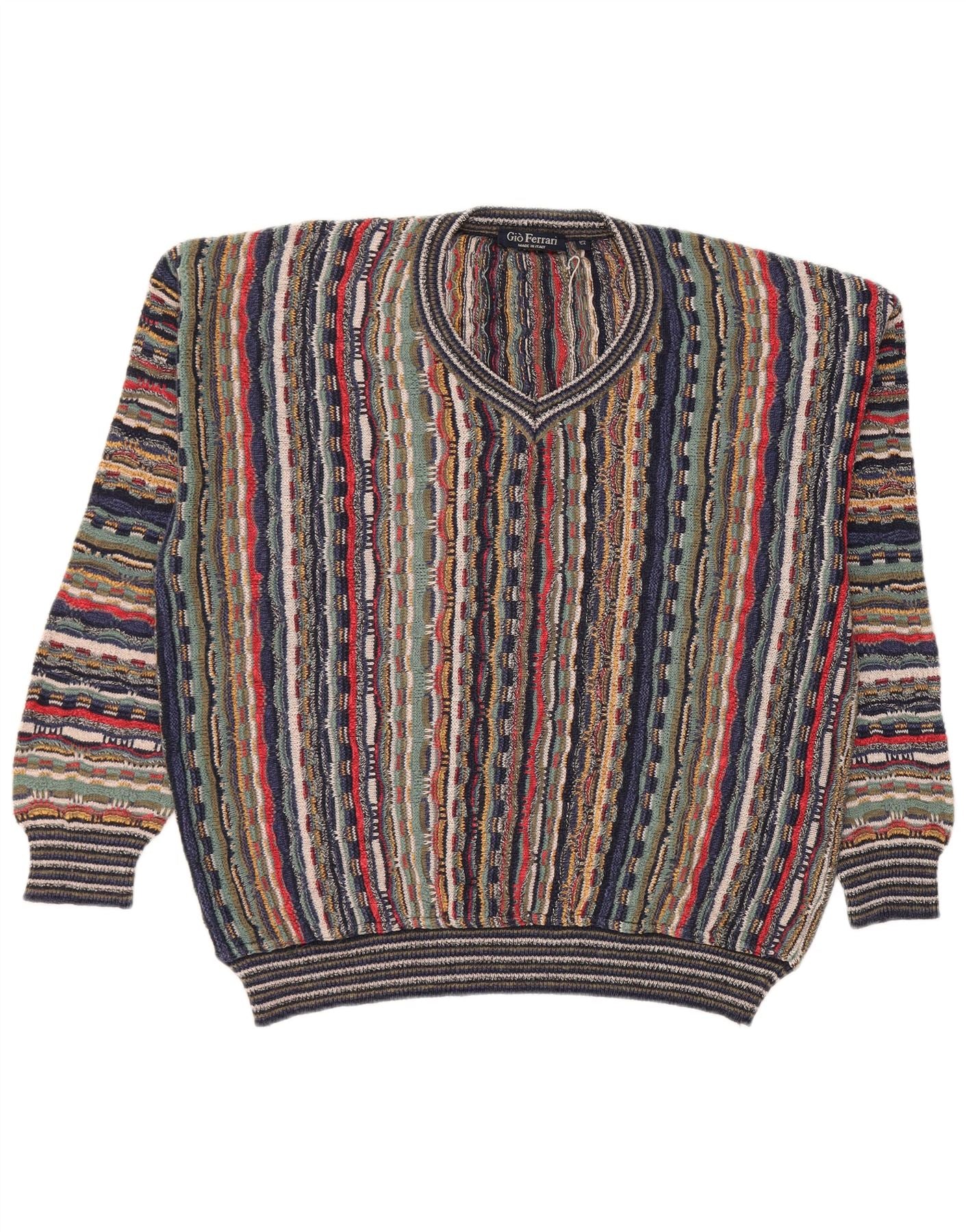 gio ferrari Ανδρικό πουλόβερ με λαιμόκοψη IT 54 XL πολύχρωμο ριγέ