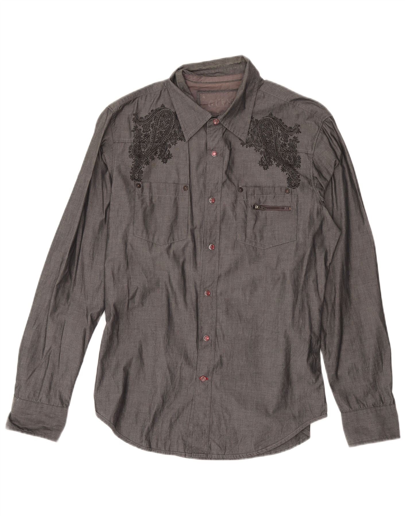 Ανδρικό πουκάμισο GUESS σε μεσαίο γκρι βαμβακερό Paisley