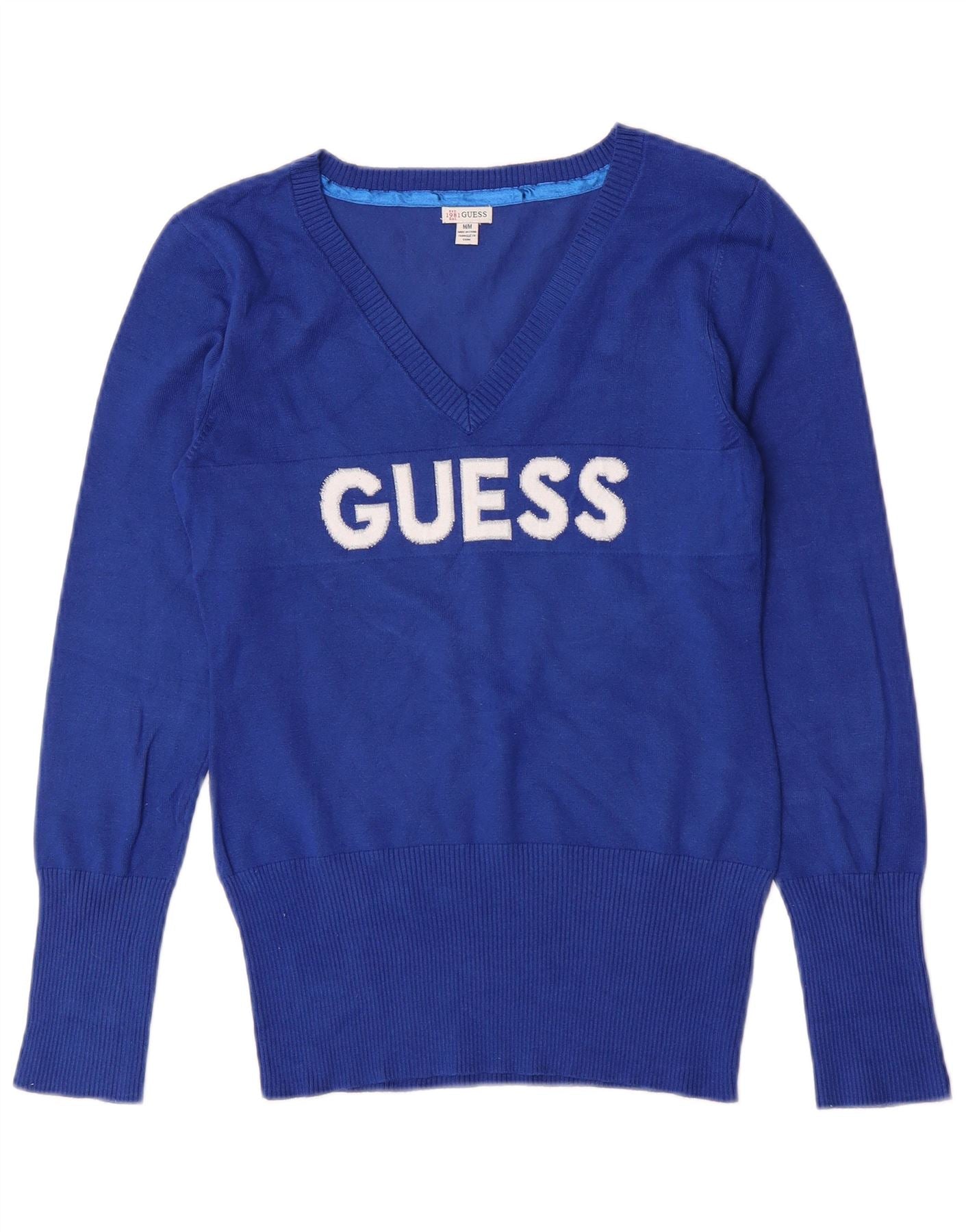 Home > Γυναικεία > Ρούχα Depop > Guess Γυναικείο πουλόβερ με γραφικό V-λαιμόκοψη UK 8 Small Blue Rayon