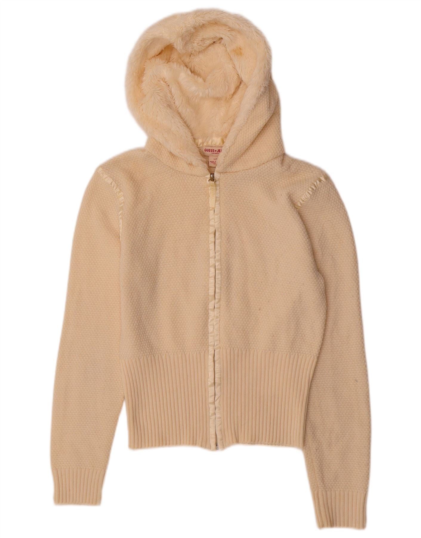 GUESS Γυναικείο πουλόβερ ζακέτα με κουκούλα UK 14 Μεγάλο υπόλευκο ακρυλικό