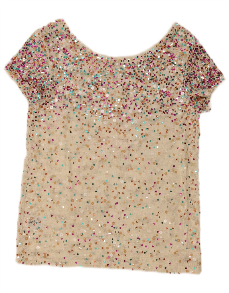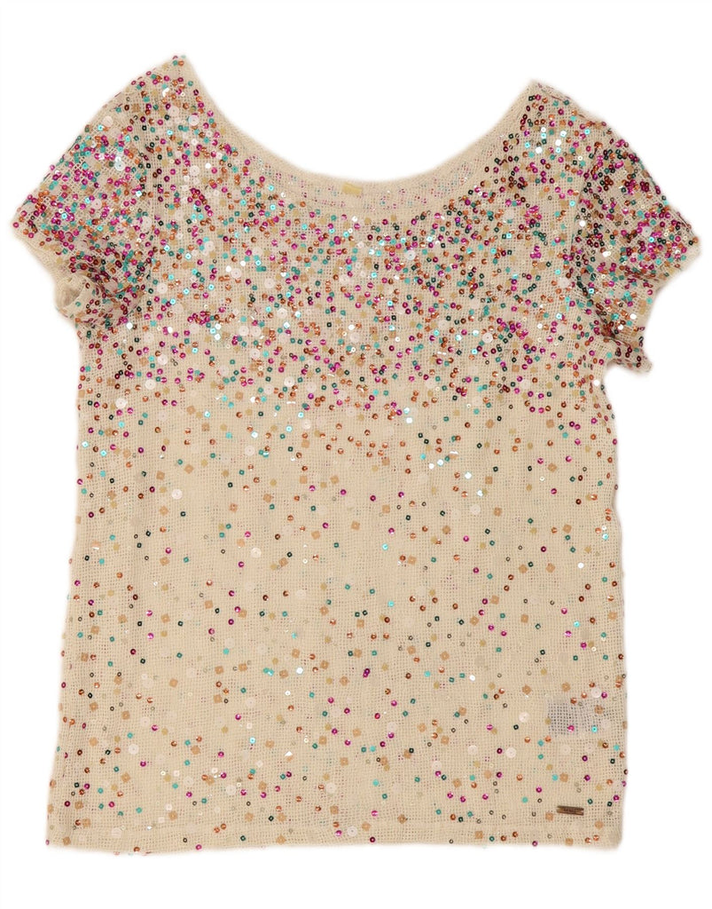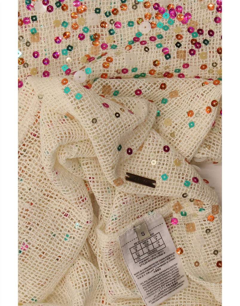 GUESS Γυναικεία μπλούζα με βελονάκι με παγιέτες τοπ 10 μικρών εκρού πολυεστέρα