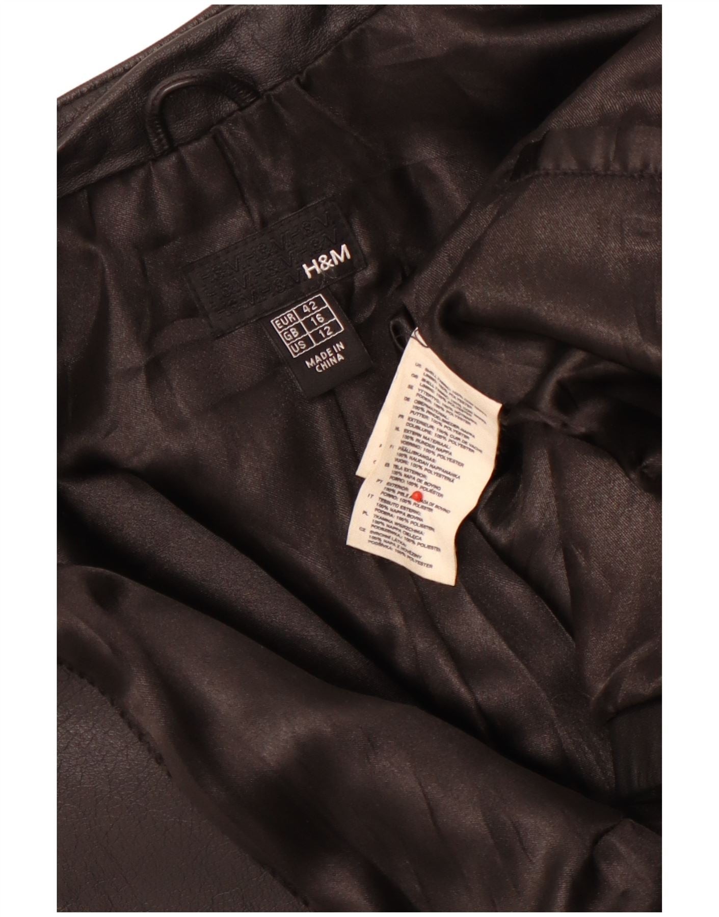 H&M Γυναικείο Crop Leather Jacket UK 16 Large Black Leather